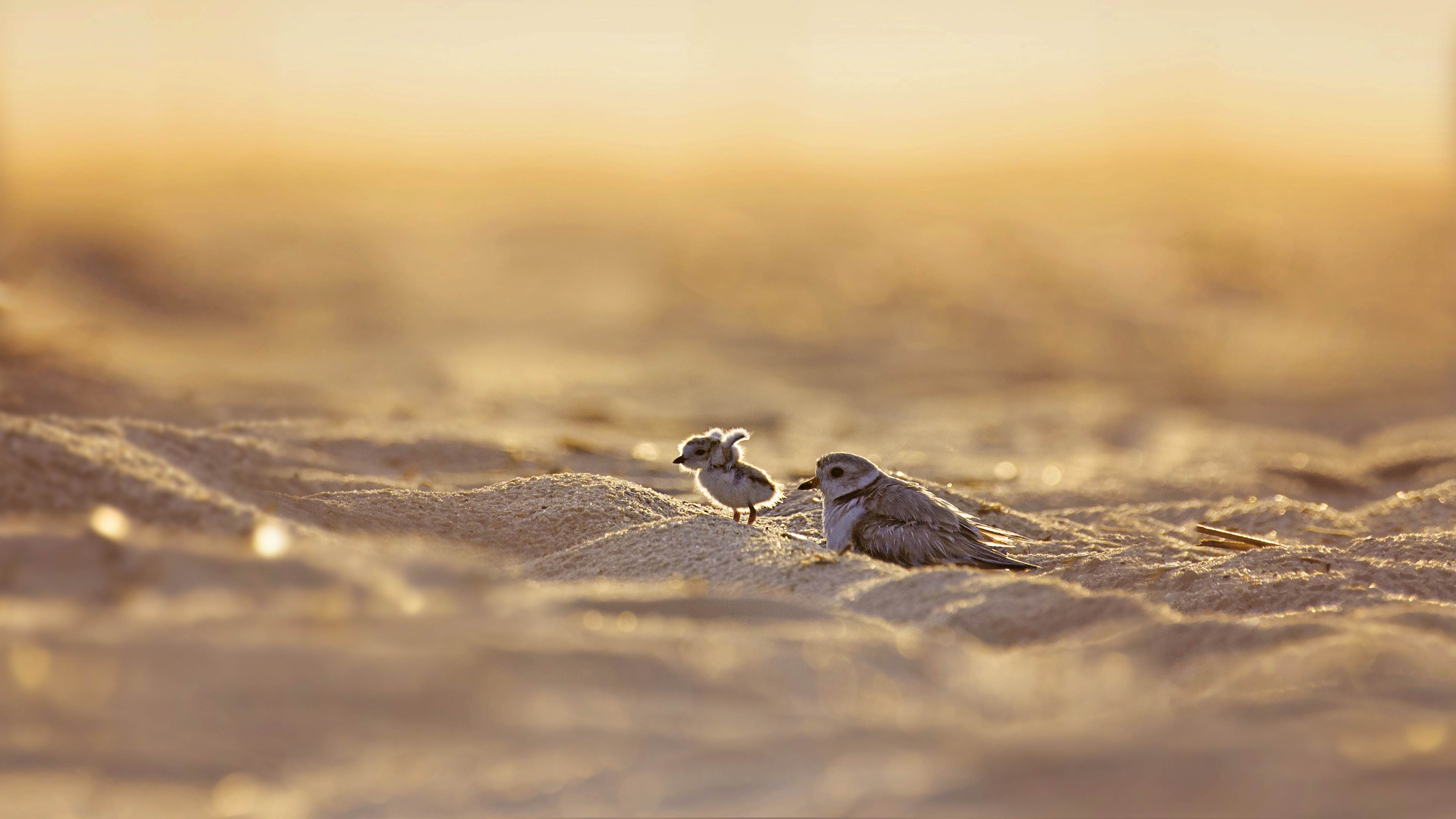 潘帕省草原上的雌性原驼和它新出生的宝宝,阿根廷