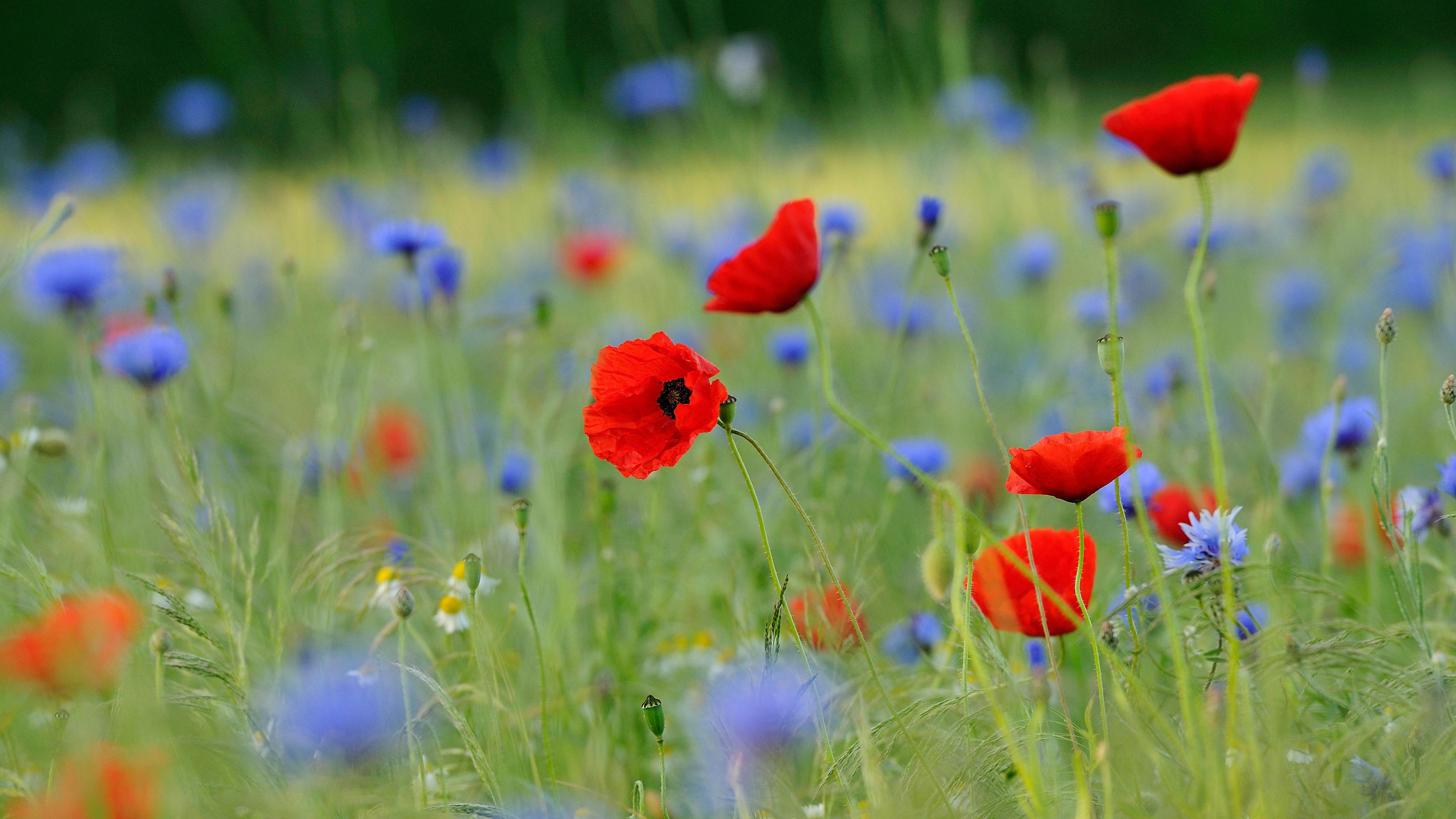 草地上的罂粟和矢车菊,德国北莱茵-威斯特法伦州