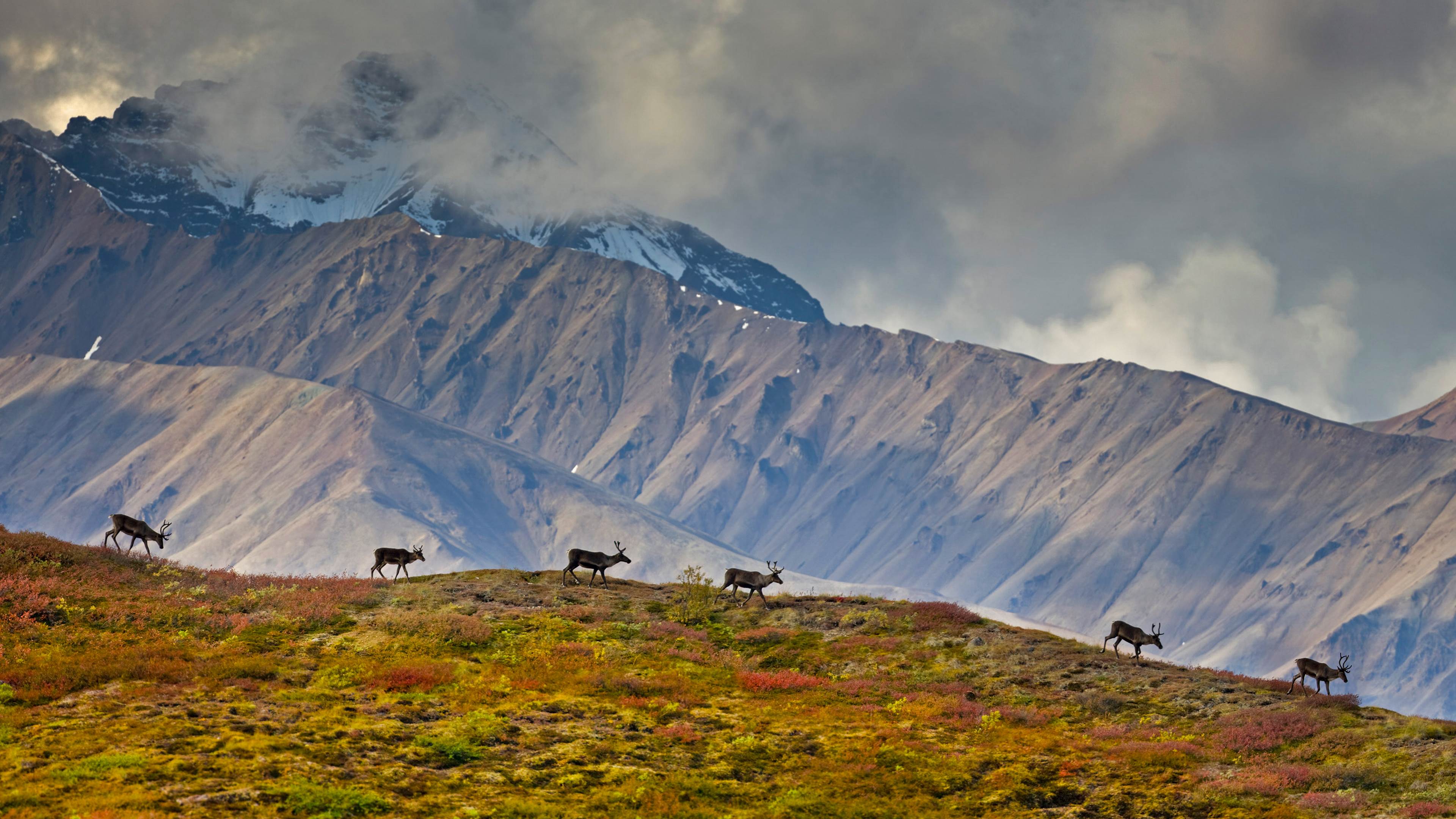 德纳利国家公园和自然保护区的驯鹿,阿拉斯加