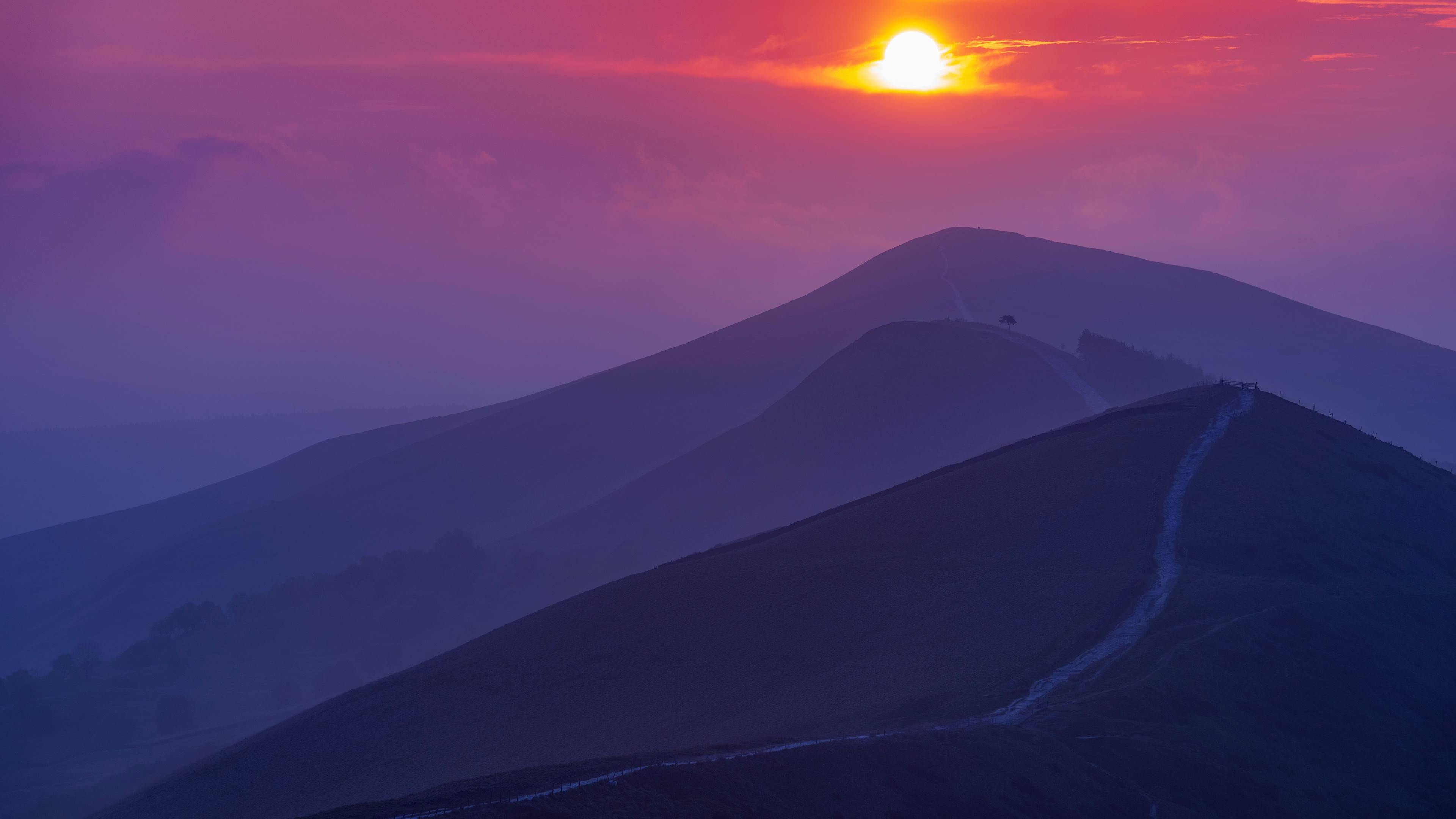 大脊山共由四座山丘构成,图中这条引人注目的天际线展示了其中的三座,它们是峰区最受欢迎的高地步道之一。 这里位于德比郡国家公园的中心地带,山脊一直延伸到Kinder Scout的边缘,将白峰的石灰岩景观与黑峰的砂岩景观分隔开,您可以在此欣赏到伊代尔和希望谷的全貌。