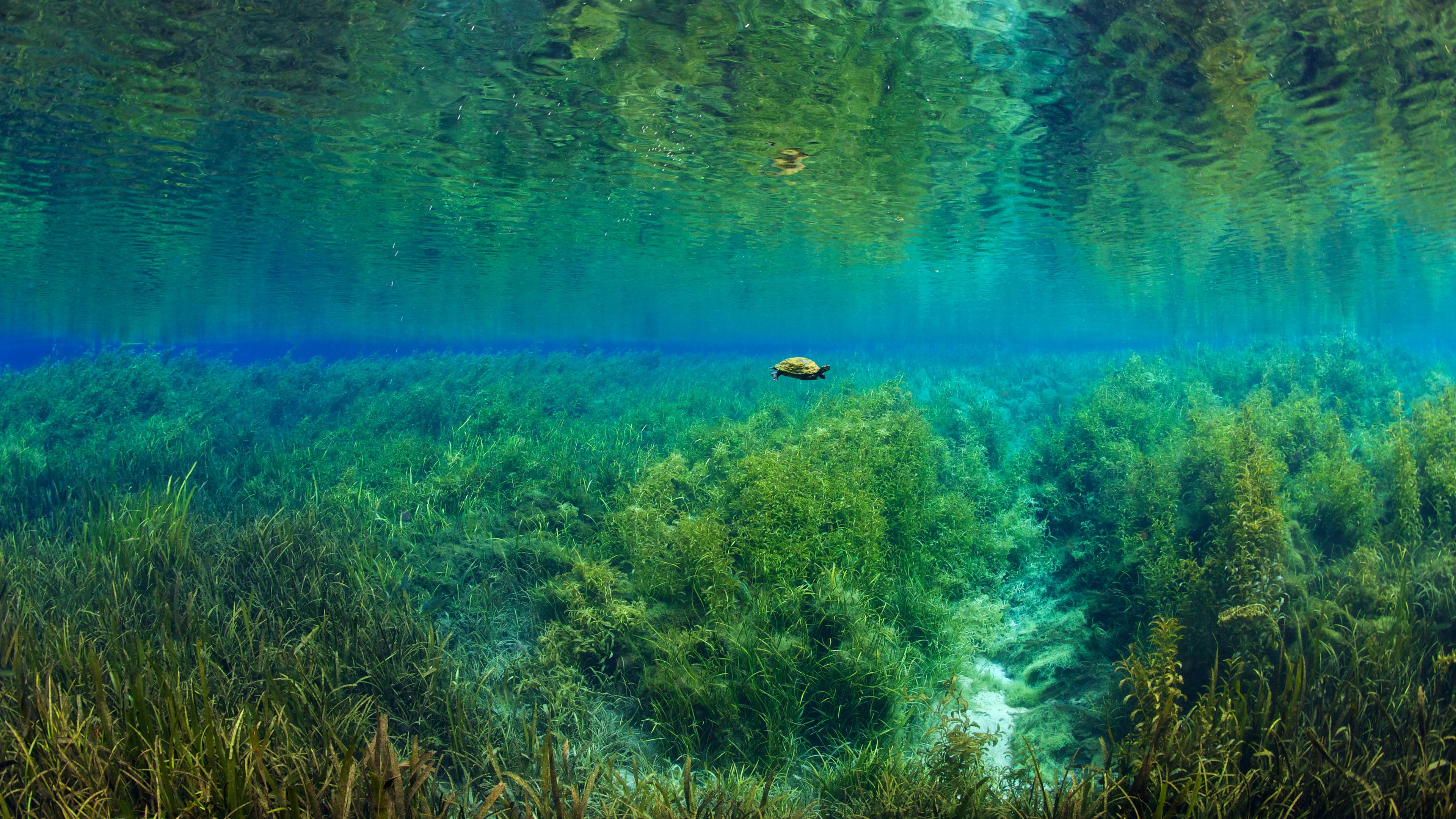 这是一只佛罗里达红肚龟,在庆祝世界海龟日的这天,它正在佛罗里达州彩虹泉州立公园清澈的海水中畅游。红肚龟大部分时间都在佛罗里达州充足的阳光下晒太阳,啃食植被,同时游泳消暑也是很不错的选择。众所周知,红肚龟会潜入鳄鱼巢中产卵。如果你要找人保护自己的孩子,那不妨把它变成鳄鱼!