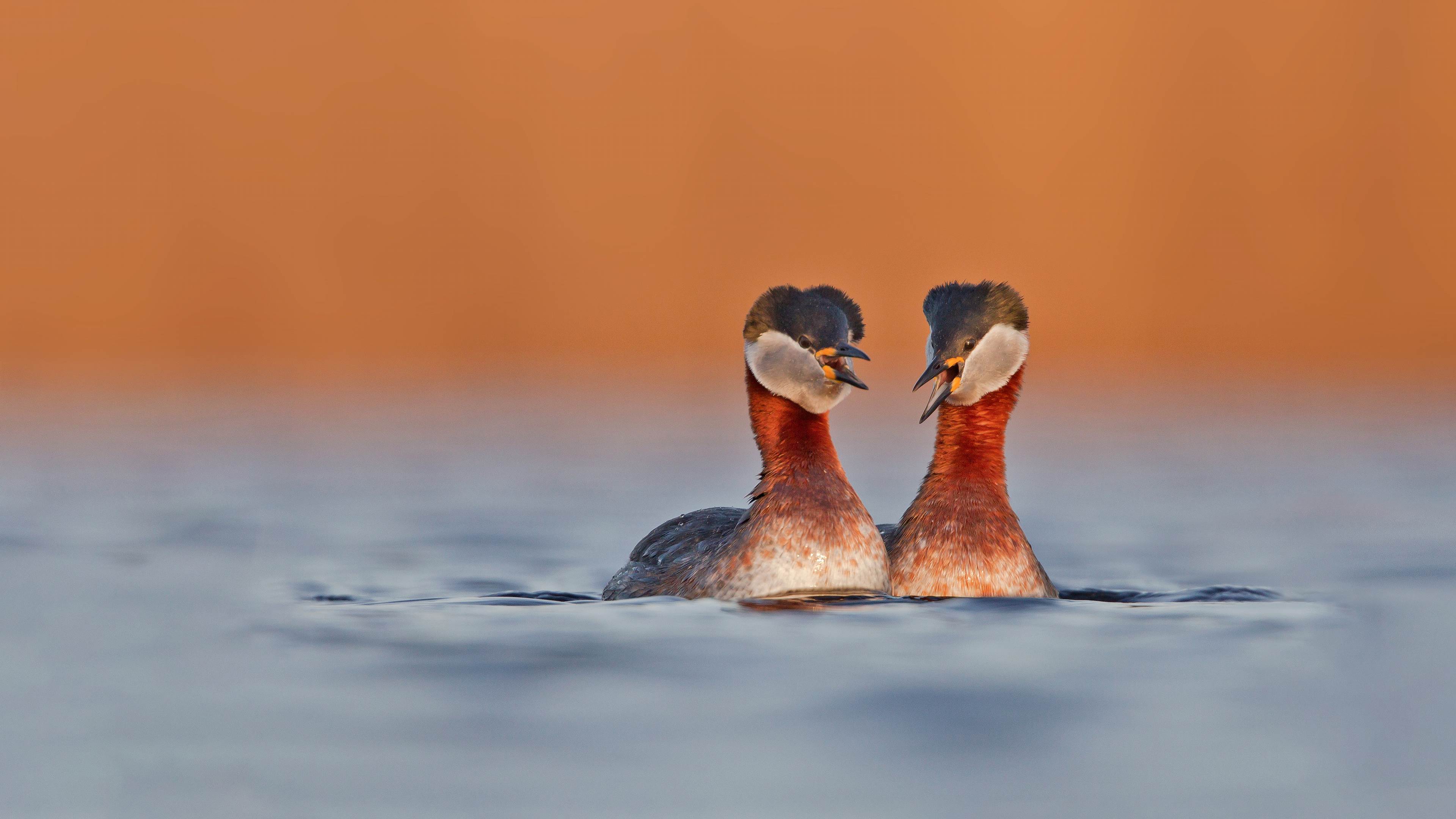 赤颈鸊鷉的个性有点分裂——事实上,它们只有大约半年是名副其实的“赤颈”。在整个冬天里,它们的羽毛不是红色的,而是棕色和灰色。此时,它们在北美和欧洲海岸的海水中过着低调平静的生活。但就在它们迁徙到北方的湖泊、池塘或沼泽为繁殖做准备之前,它们喉咙周围的羽毛就会变成独特的铁锈红色。雄性和雌性鸊鷉都会经历这一变化。