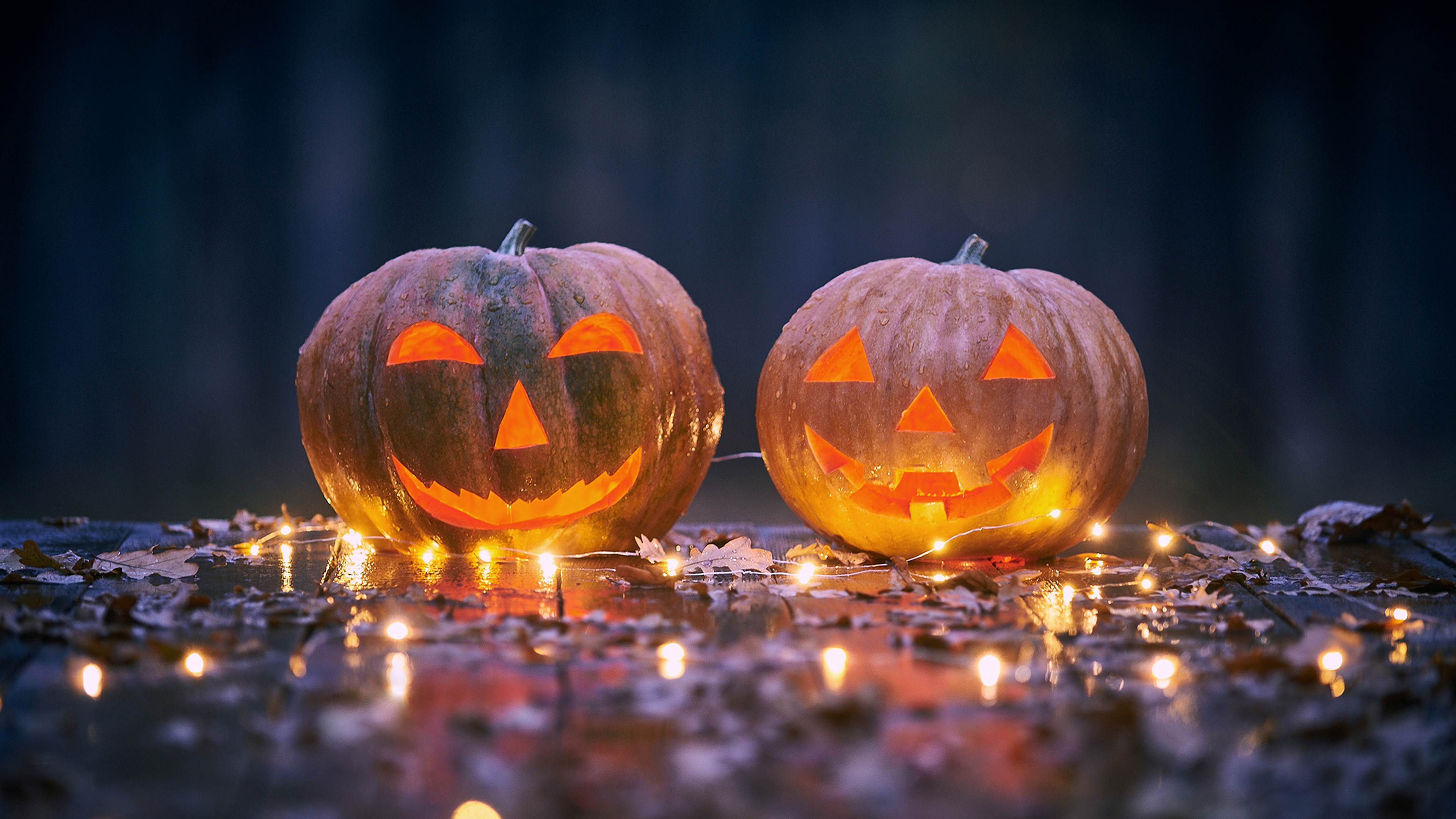 神秘森林里木桌上的两个微笑的万圣节南瓜 © sandsun/Getty Images 万圣节 南瓜灯最早起源于古代爱尔兰。后来这个习俗传入美国,新大陆的人们用南瓜替代萝卜,在上面雕刻鬼脸,在里面放上蜡烛,演变成了现在的南瓜灯,成为了万圣节的标志性装饰。 森林 爱尔兰 标志性 万圣 装饰 神秘 雕刻 习俗 南瓜 古代 起源 微笑 里面 蜡烛 放上
