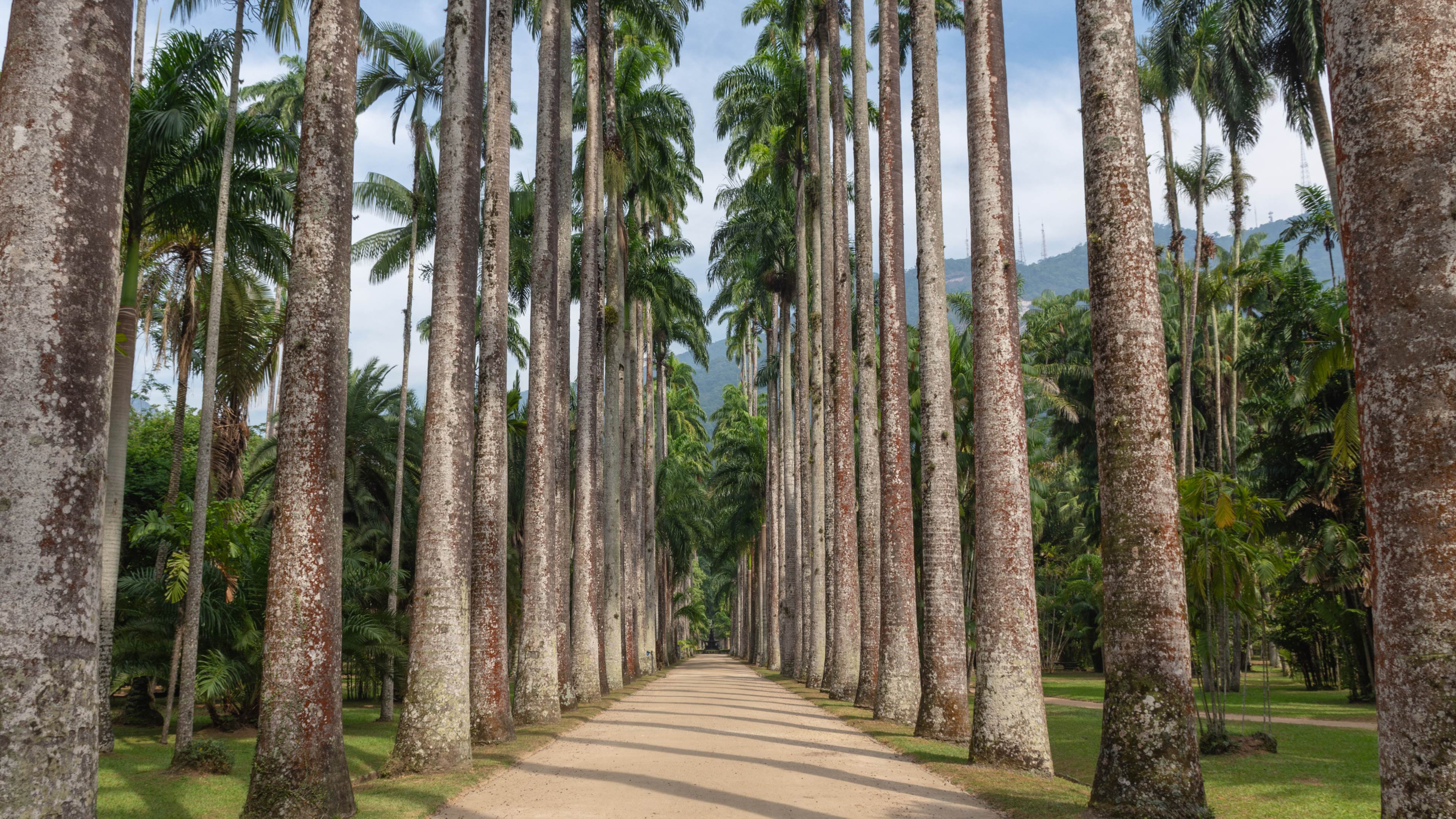 里约热内卢植物园是巴西最早规划的植物园之一,始建于殖民时期,园内有8000多种植物,很多都是罕见的品种。这些植物大部分是在温室中繁殖培育而来的,其中一些还模仿了野生品种的自然生长环境。图中展示的是其中一条名为“皇家棕榈大道”的著名的大道,它由134棵棕榈树组成,长约750米(2460英尺),从入口通往花园。