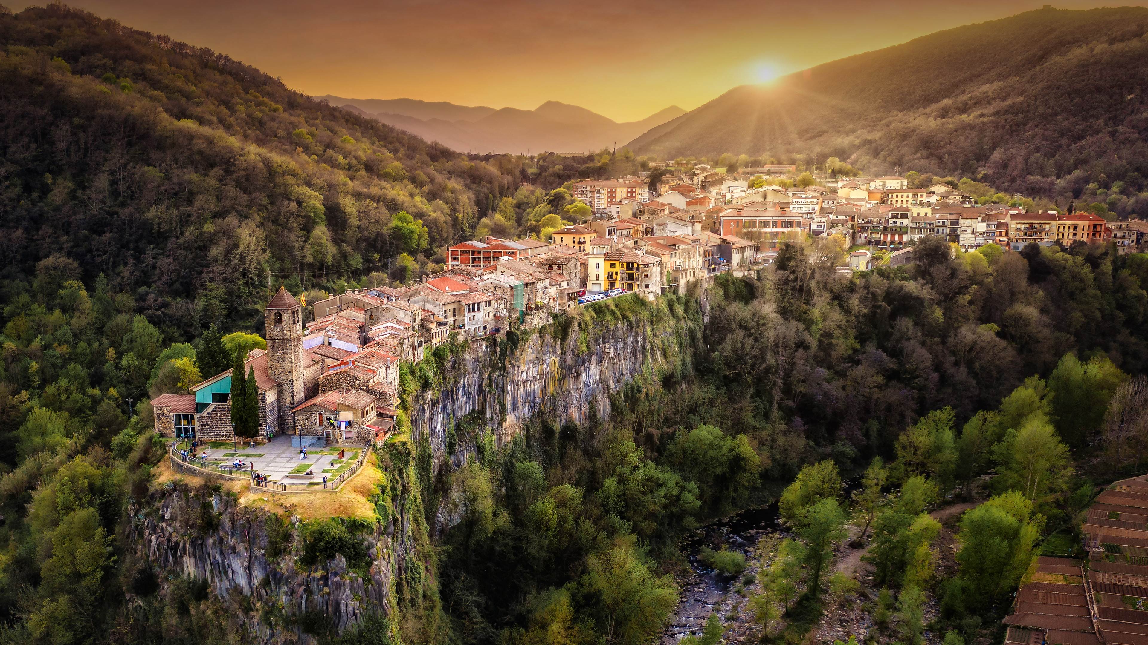 坐落在玄武岩悬崖边上的小镇,眺望着脚下奔流不息的河流。今天的照片展示的是西班牙东北部加泰罗尼亚地区的富利特堡-德拉罗卡。这个小镇并不适合胆小的人:从160英尺高的悬崖上向下俯瞰,托罗内尔河和弗鲁维亚河在悬崖底部汇合。许多建筑都是由小镇所在的玄武岩建造而成,似乎就在悬崖边上岌岌可危。图为位于峭壁尽头的13世纪圣萨尔瓦多教堂。
