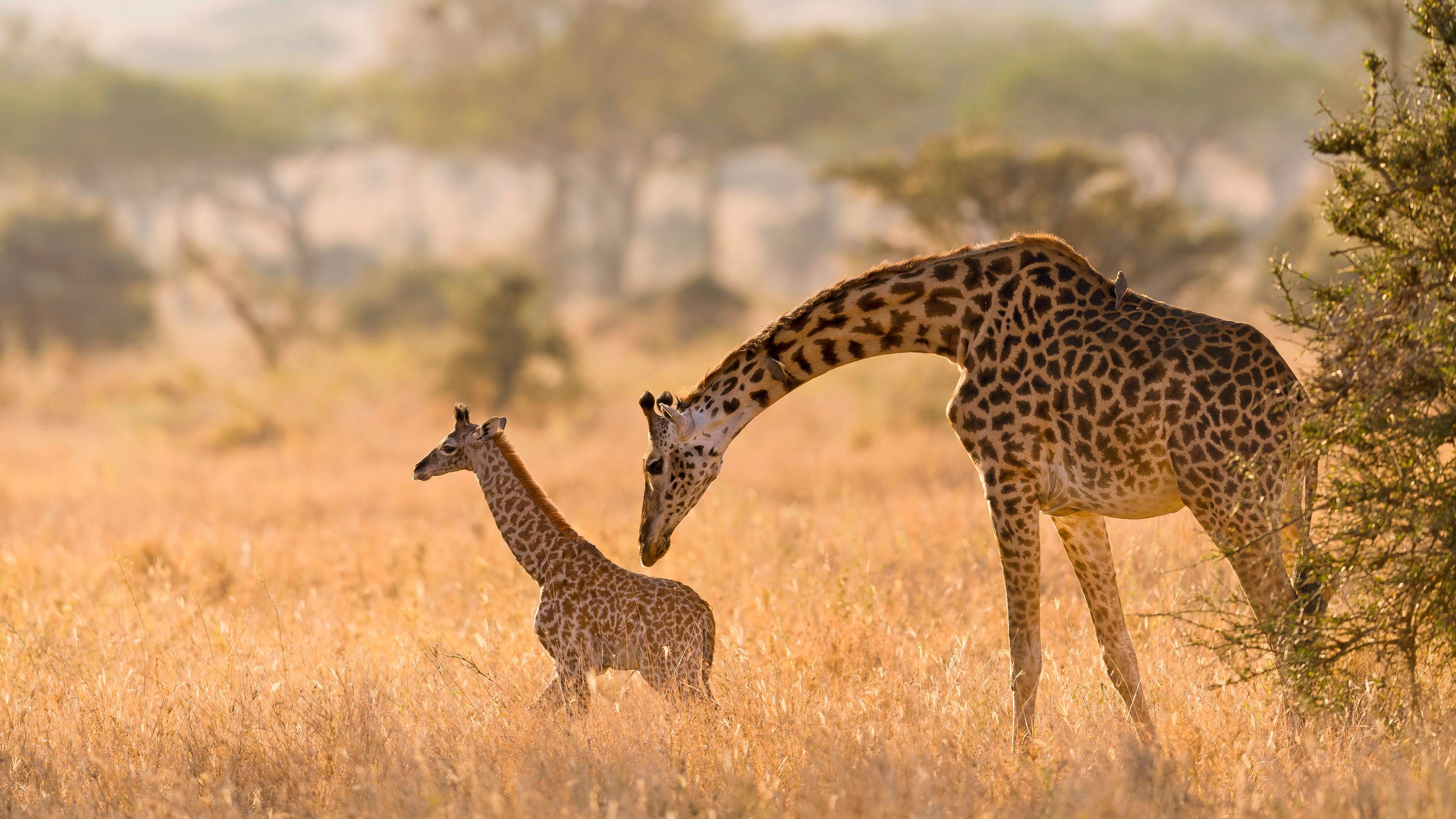 今天我们介绍的是生活于塞伦盖蒂地区的马赛长颈鹿。它们以独特的锯齿状斑点而闻名,是东非的本土物种。除了肯尼亚和乌干达,马赛长颈鹿还广泛分布于坦桑尼亚辽阔的塞伦盖蒂平原。“塞伦盖蒂”一词源自马赛语“seringit”,意为“无边无际的平原”。如今日图片所示,一对母子马赛长颈鹿在这片壮阔的景色中彼此依偎,画面温馨动人。据估计,目前全球野生长颈鹿仅存约117000头,现在正是采取行动的关键时刻。通过支持“世界长颈鹿日”, 你可以为保护这些奇特生物及其自然栖息地贡献力量。加入这一年度庆祝活动,为地球上最高的陆生动物带来切实的改变。