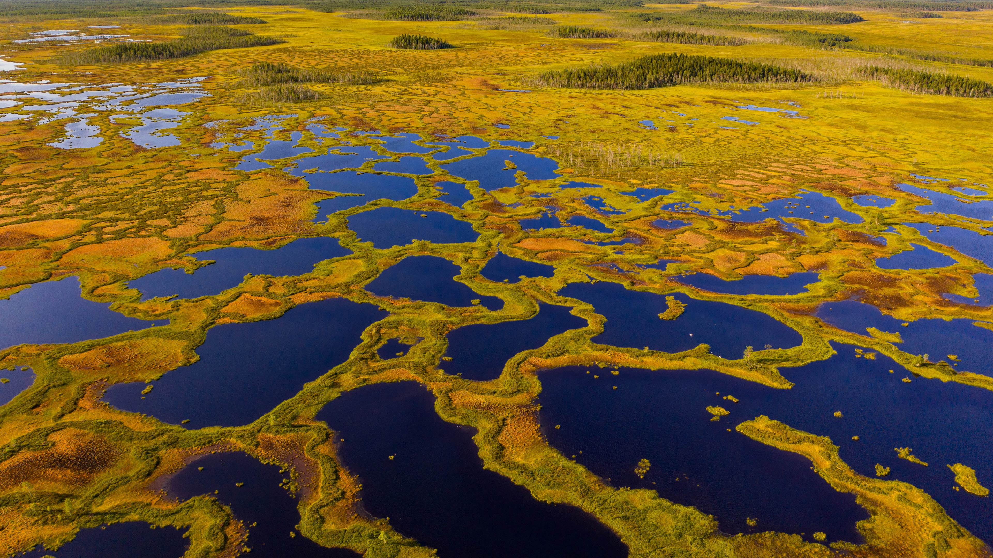 芬兰的沼泽大多是由泥炭地组成,它们源自大约 12,000 年前上一个冰河时期结束后,沉积物与苔藓不断堆积、分解而成。