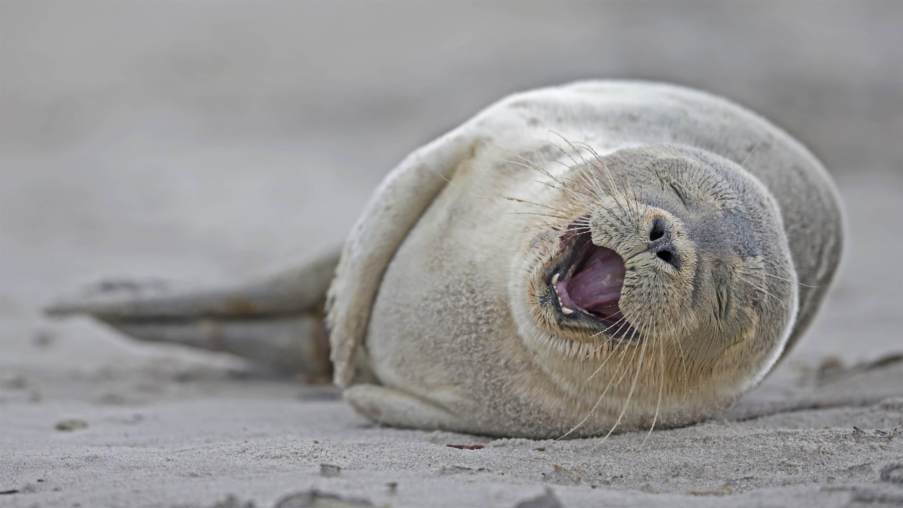 一只躺在沙滩上的港海豹幼崽,德国黑尔戈兰岛 (© Fotofeeling/Westend61/Offset)