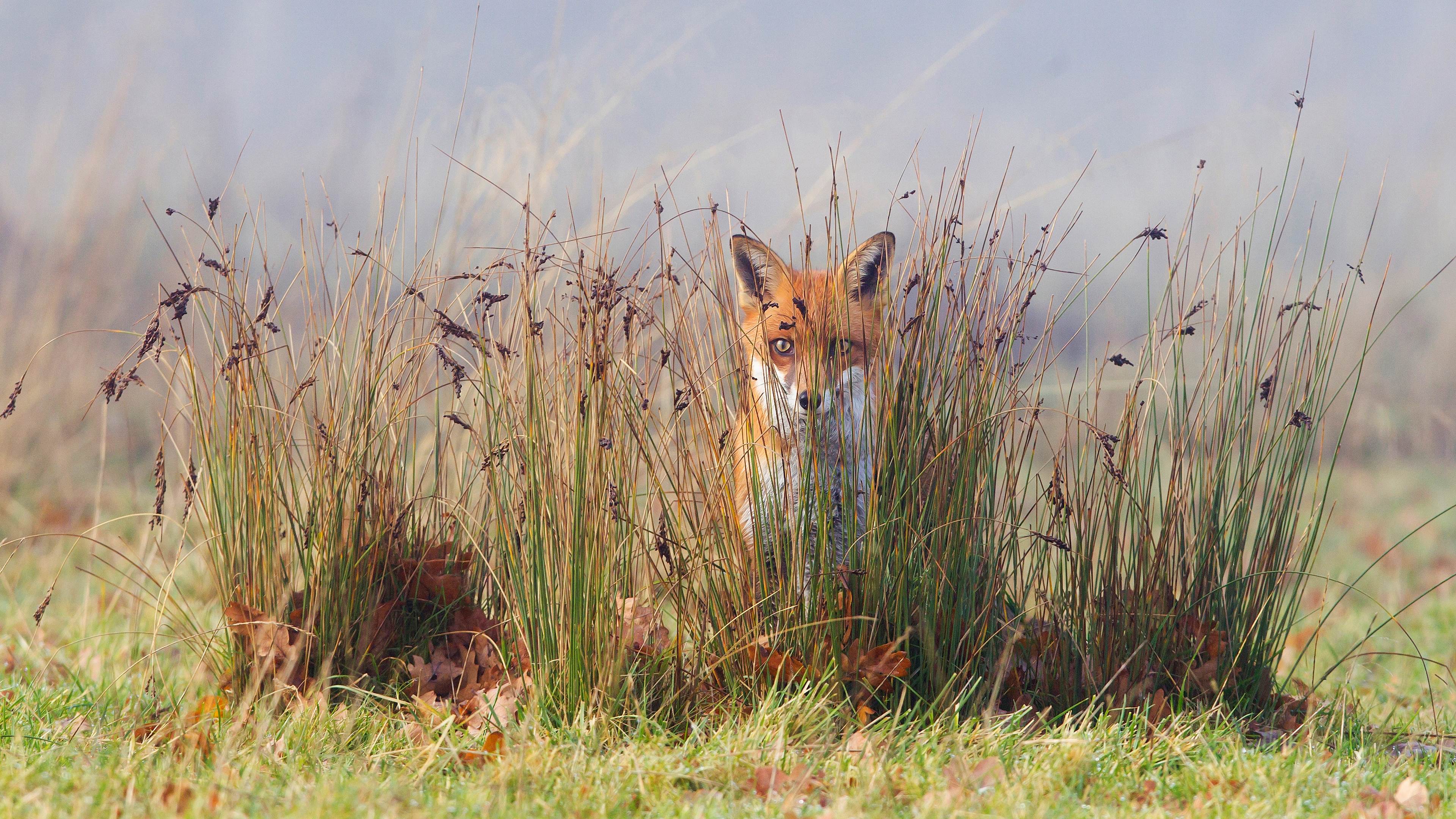 一只草丛里的狐狸 (© Frederic Desmette/Minden Pictures)