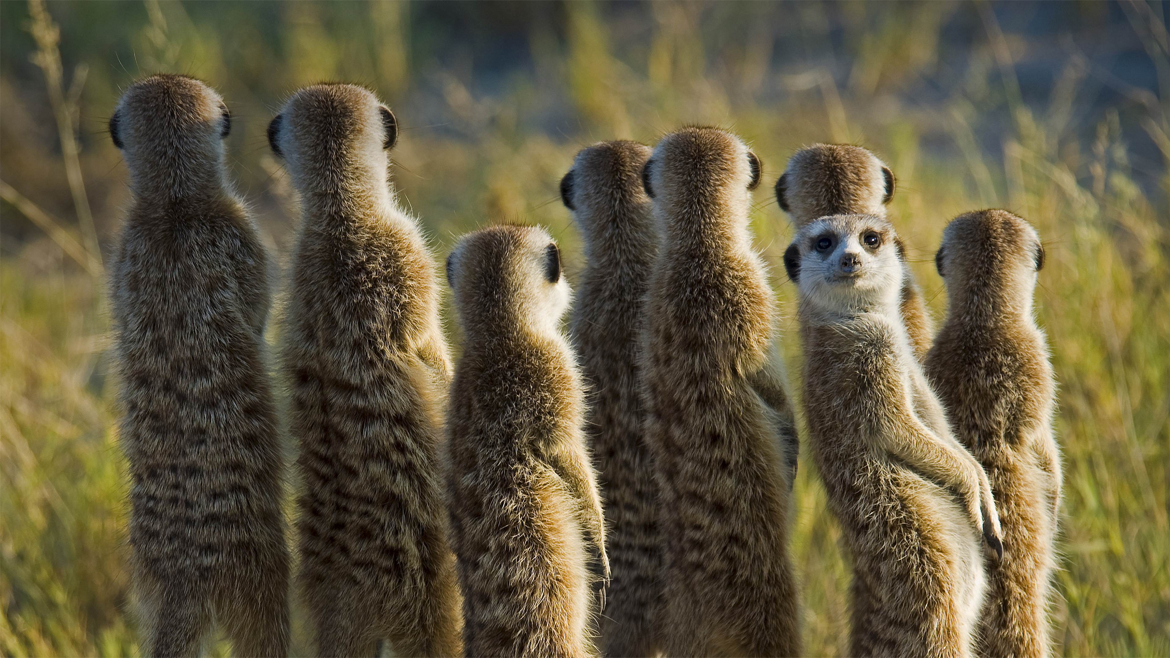 博茨瓦纳卡拉哈里沙漠中的狐獴 (© Aluma Images/Getty Images)