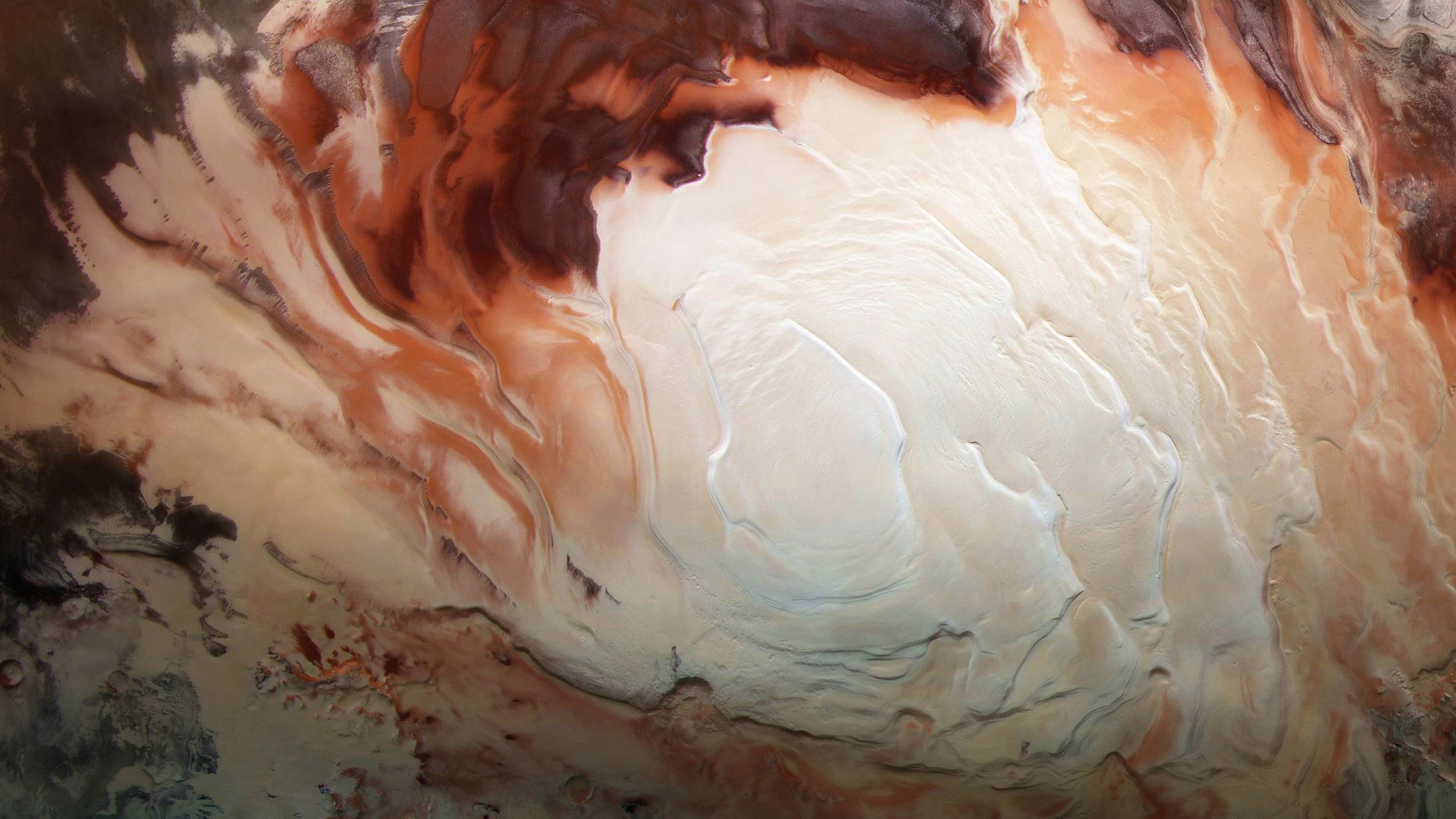 火星快车号传来的火星南极冰盖图像 (© ESA/DLR/FU Berlin/Bill Dunford)