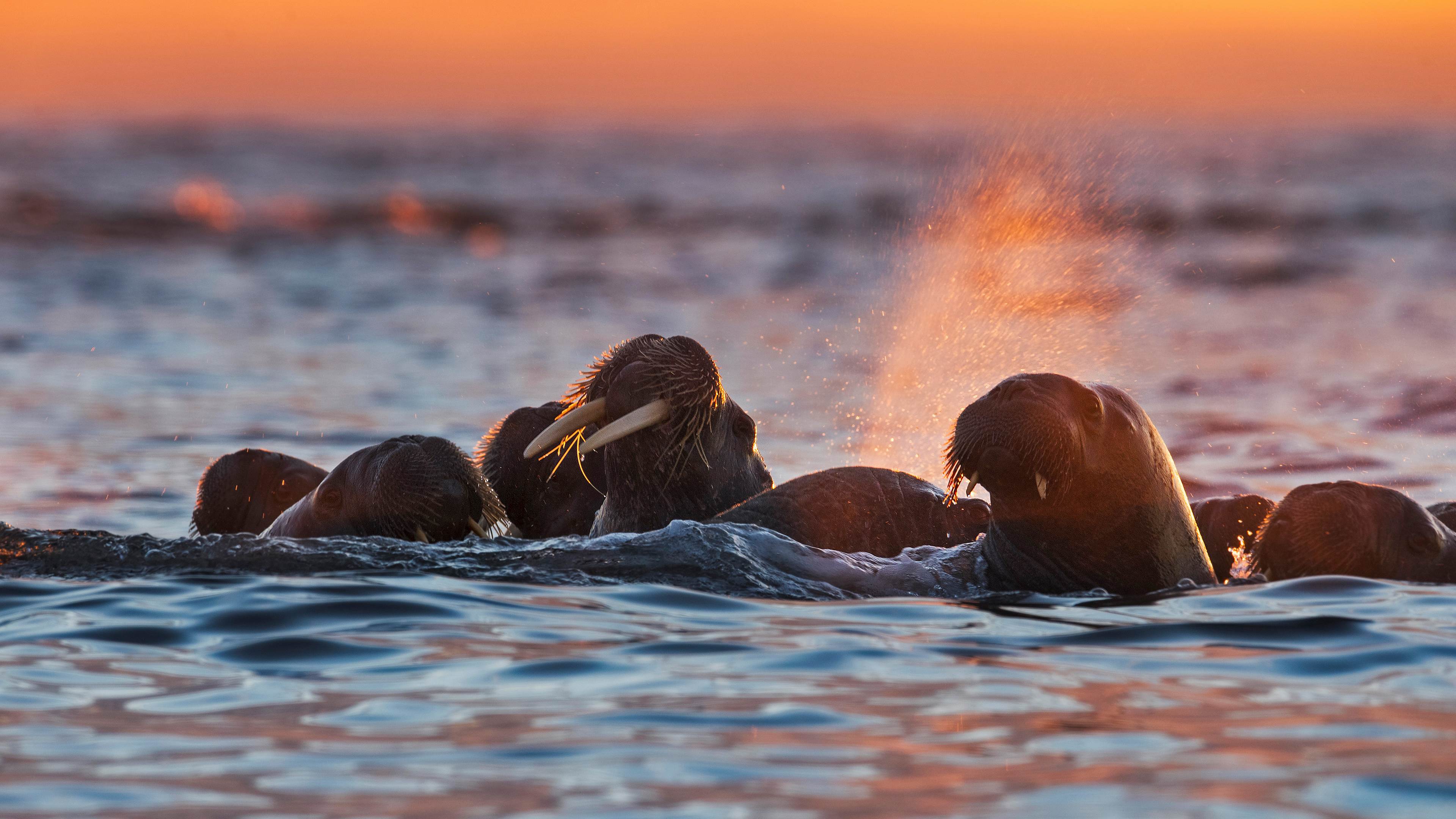 白岛附近的海象,挪威斯瓦尔巴群岛 (© Ole Jorgen Liodden/Minden Pictures)