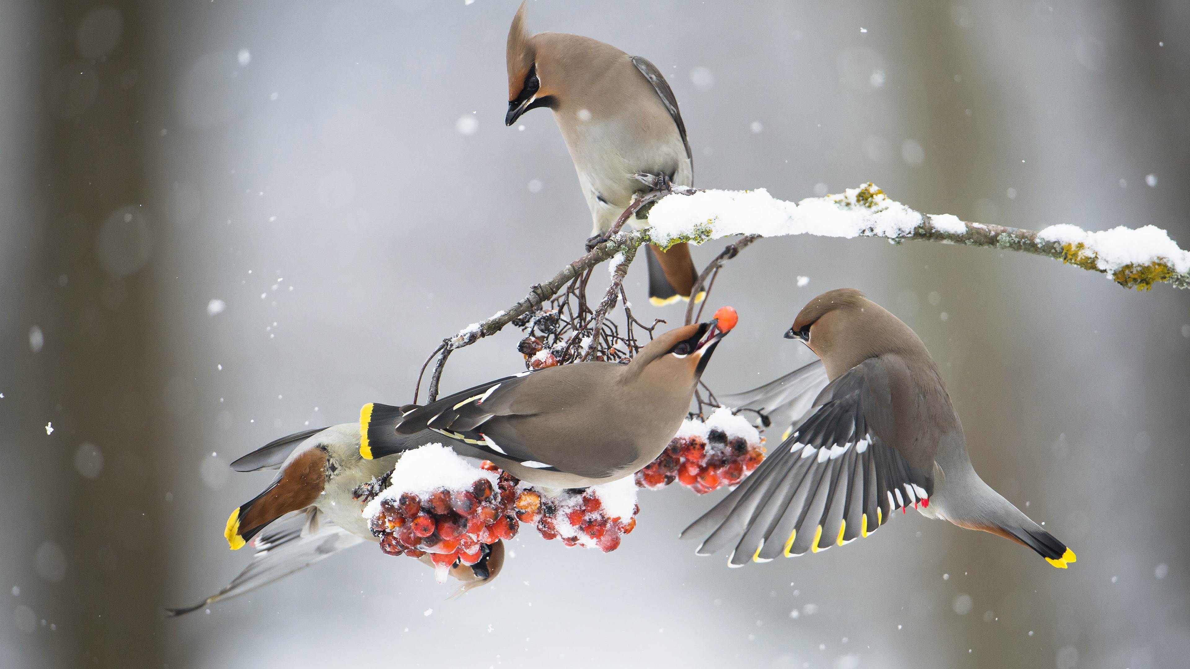 正在吃花楸果实的太平鸟 (© Berndt Fischer/Getty Images Plus)