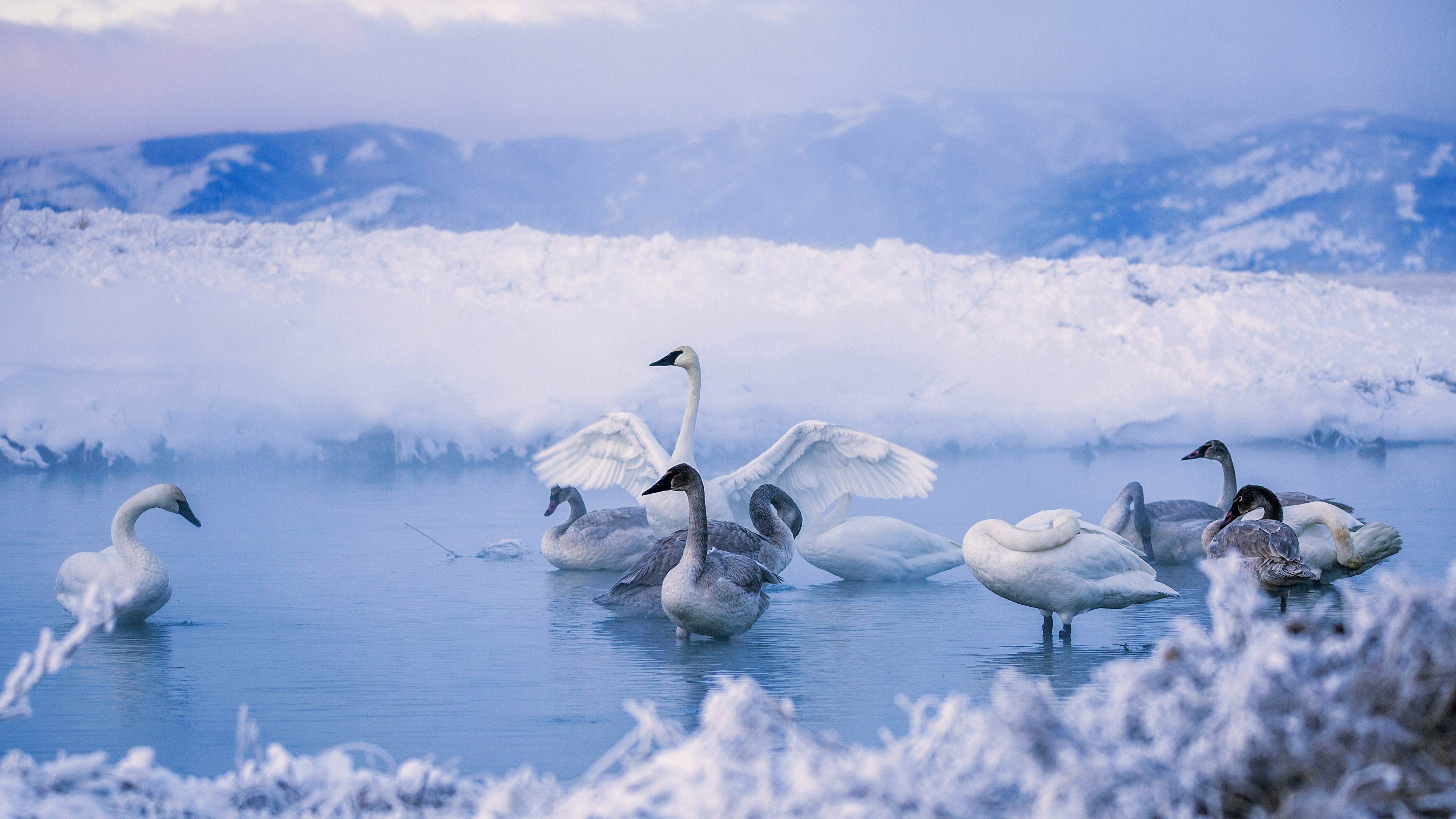 凯利温泉中的黑嘴天鹅,怀俄明州 (© DEEPOL by plainpicture)