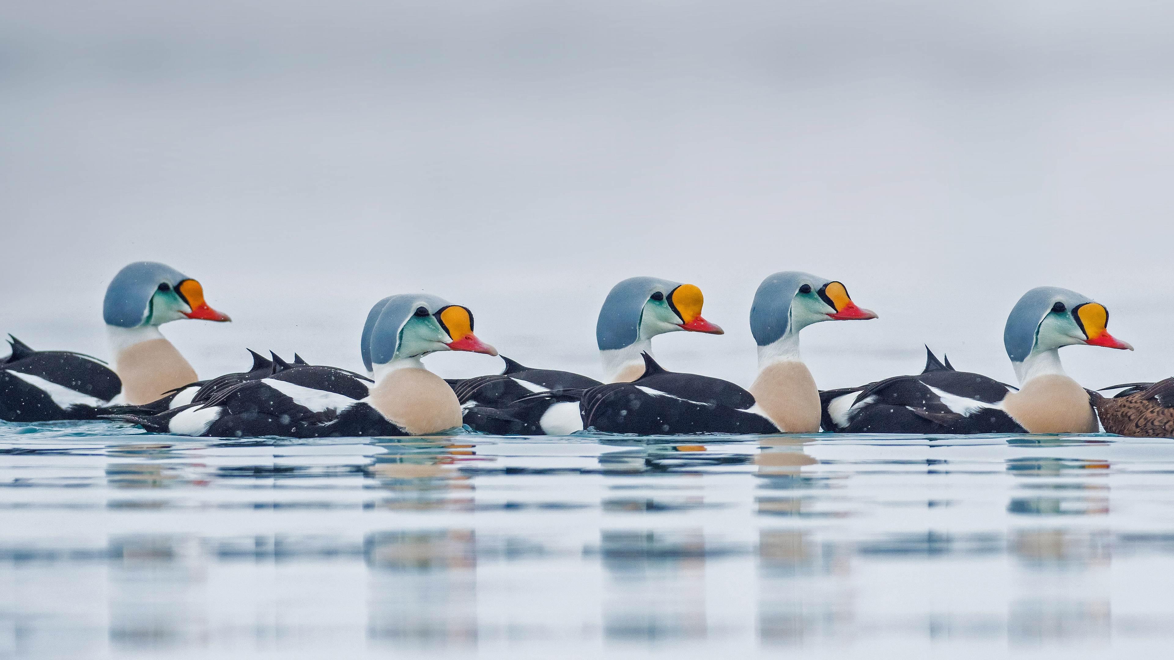 正在游水的雄性王绒鸭,挪威特罗姆斯-芬马克郡 (© Pal Hermansen/Minden Pictures)