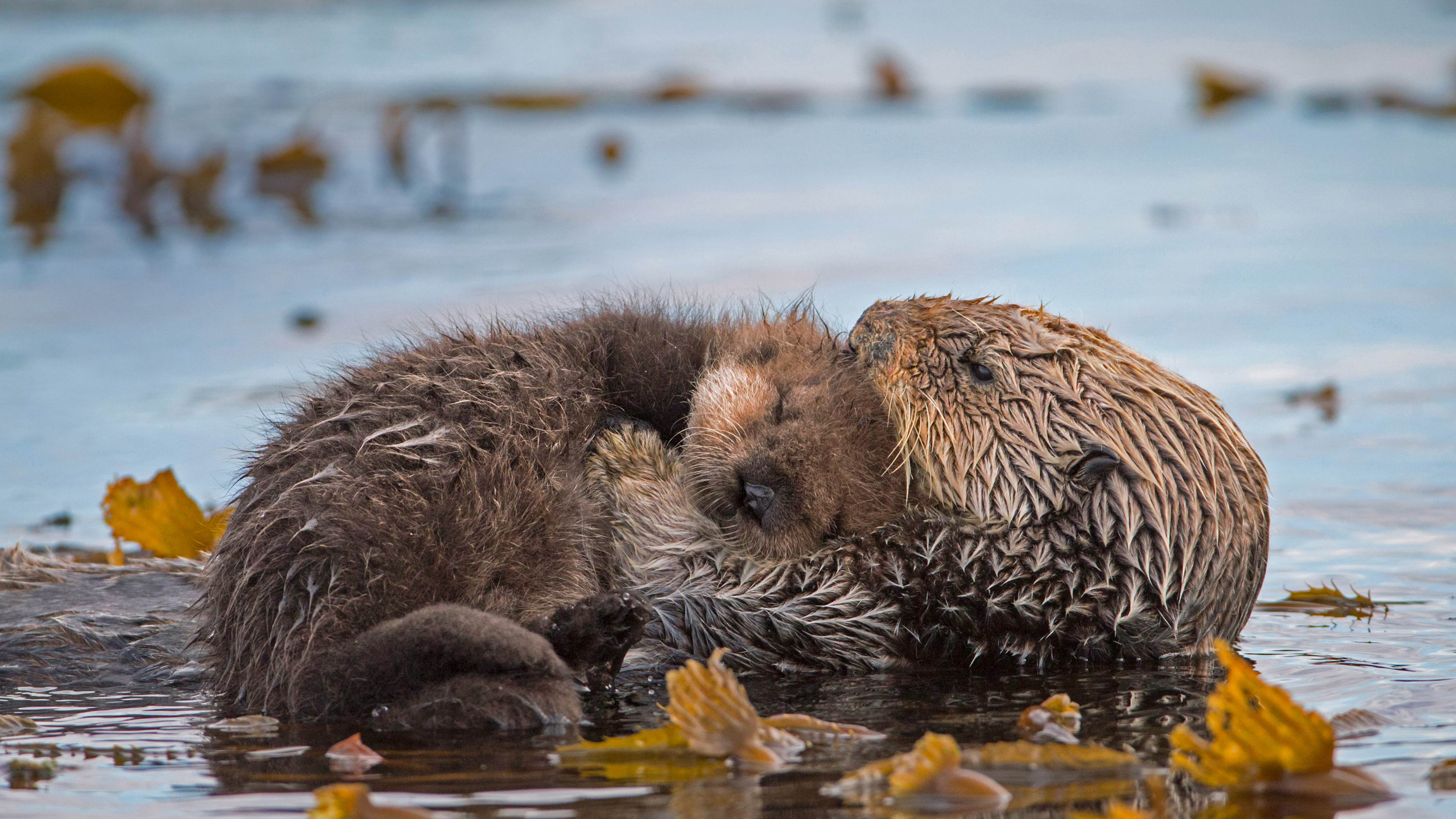 海獭妈妈和新生的小狗,加利福尼亚蒙特雷湾 (© Suzi Eszterhas/Minden Pictures)