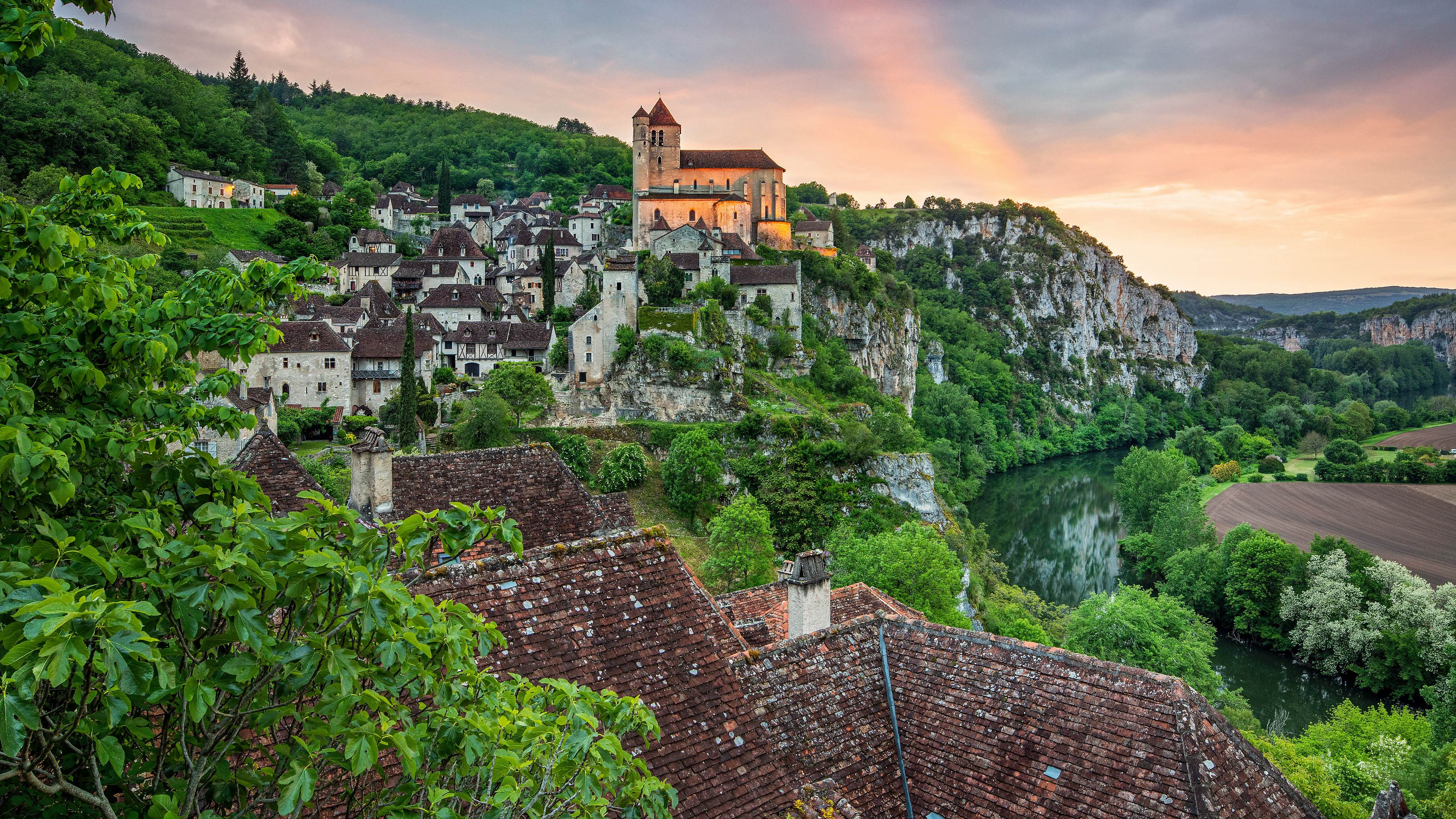 从波迪安西之路的洛特谷中望向圣西尔克·拉波皮教堂,法国洛特 (© Reinhard Schmid/Huber/eStock Photo)