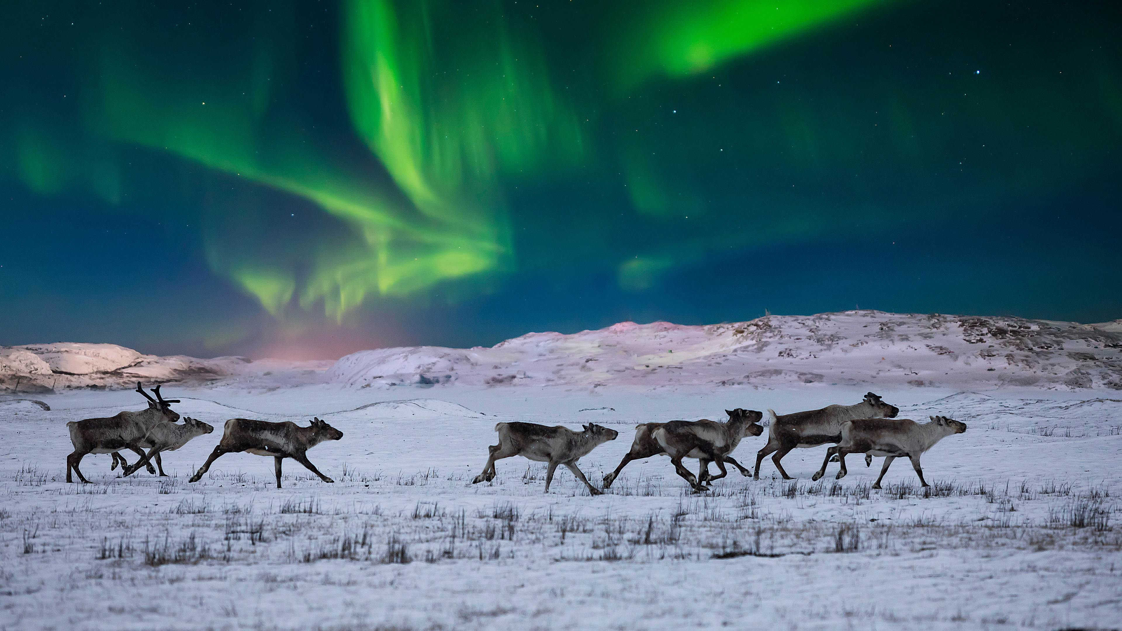 挪威苔原上的北极光和野生驯鹿 (© Anton Petrus/Getty Images)