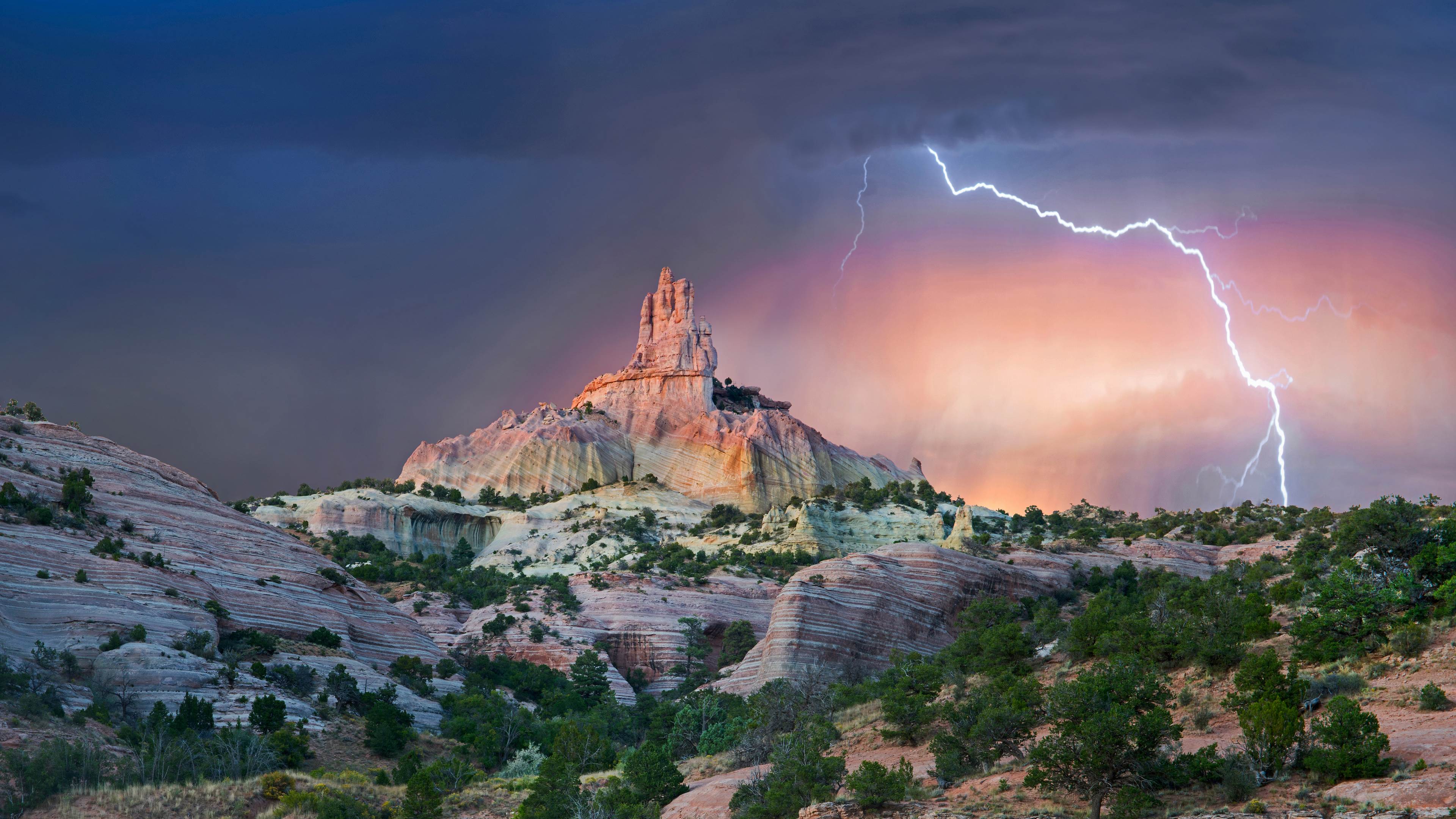 红石公园教堂岩附近的雷击,新墨西哥州 (© Tim Fitzharris/Minden Pictures)