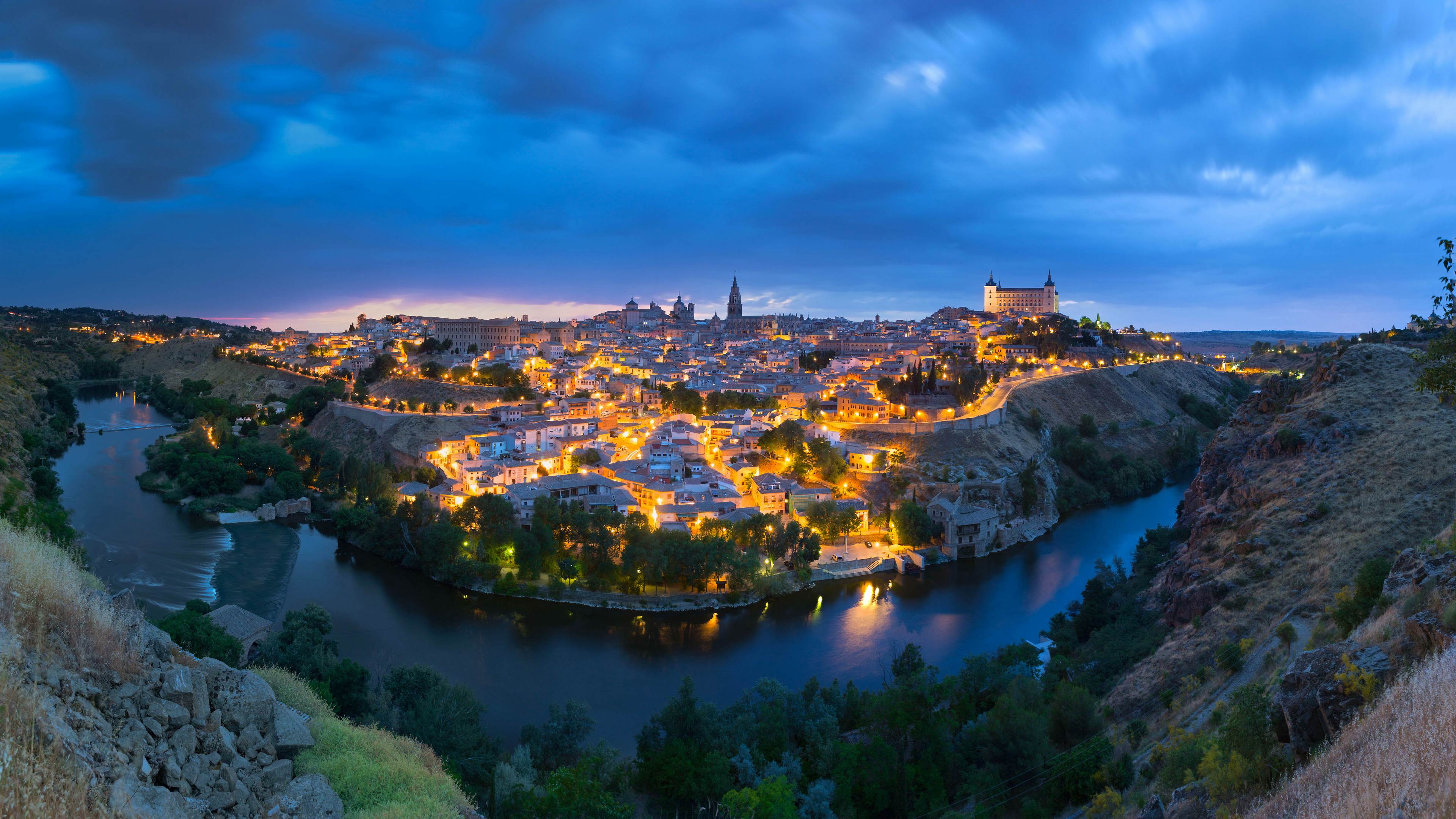 日落后的托莱多全景,西班牙 (© Frank Fischbach/Alamy)
