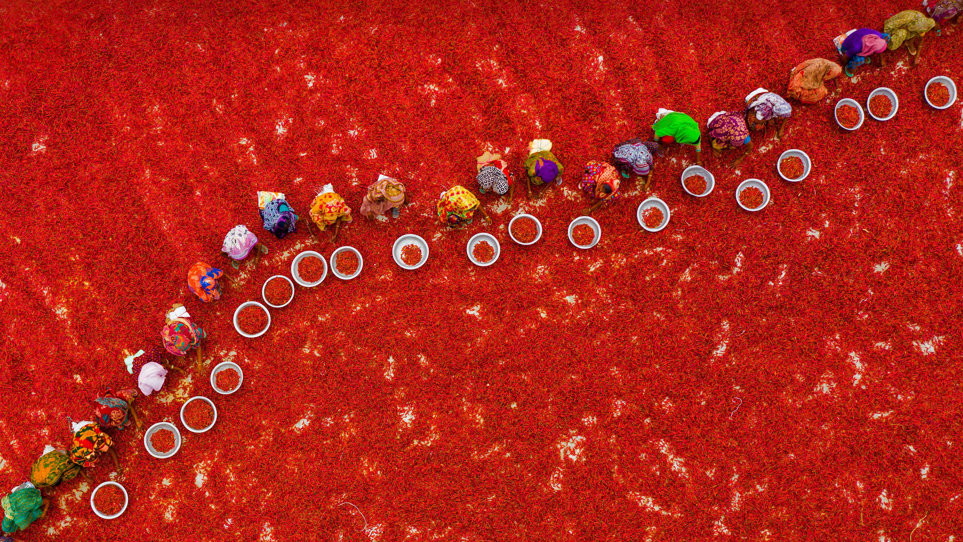 农场上晾晒的红辣椒,孟加拉国博格拉县 (© Amazing Aerial Agency/Offset/Shutterstock)