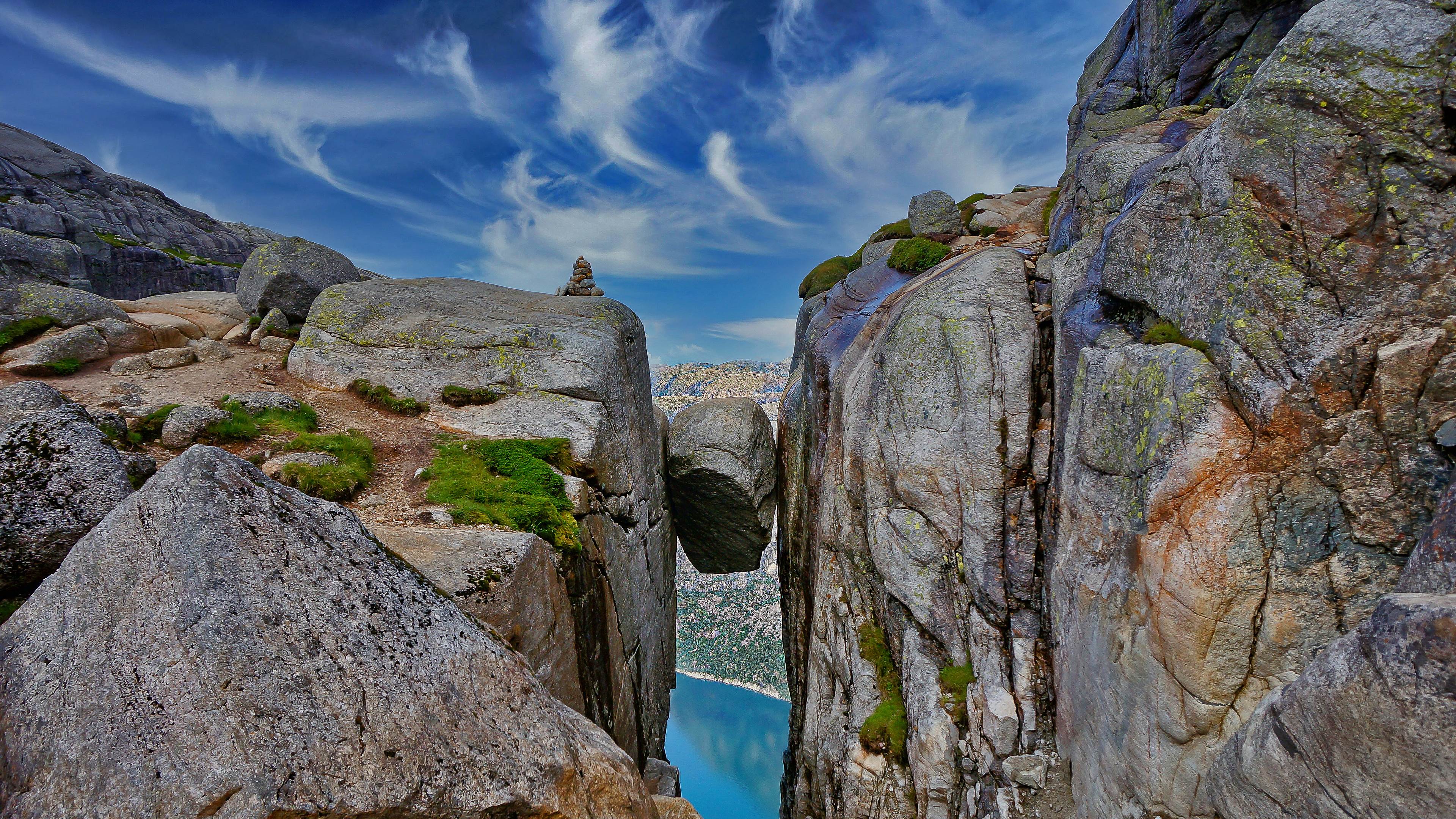 如果您有强大的勇气,您一定会喜欢这张照片上看起来非常不稳定的谢拉格伯顿石(奇迹之岩)。游客们只需爬上挪威西南海岸的谢格拉山,便有机会爬上这个岩石,并为子孙后代拍摄一张彰显他们勇气的照片。事实上,谢拉格伯顿石十分受欢迎,以至于可能需要排队一小时才能轮到您爬上去,这也给了您足够的时间去紧张和思考。<br>那么,谢拉格伯顿石是如何被卡在谢拉格山的一个裂缝中,并在下面有一个791英尺的明显落差的呢?专家说,这是由于经过数百万年的冰川活动,冰最终退到山谷中,才留下了山上的这块著名岩石。如今,这个神奇地质遗迹吸引了许多勇敢的冒险家和摄影师。如果您不喜欢肾上腺素飙升的刺激感,别担心,谢拉格山还为您提供其他非常安全的、令人叹为观止的山谷和峡湾景观。