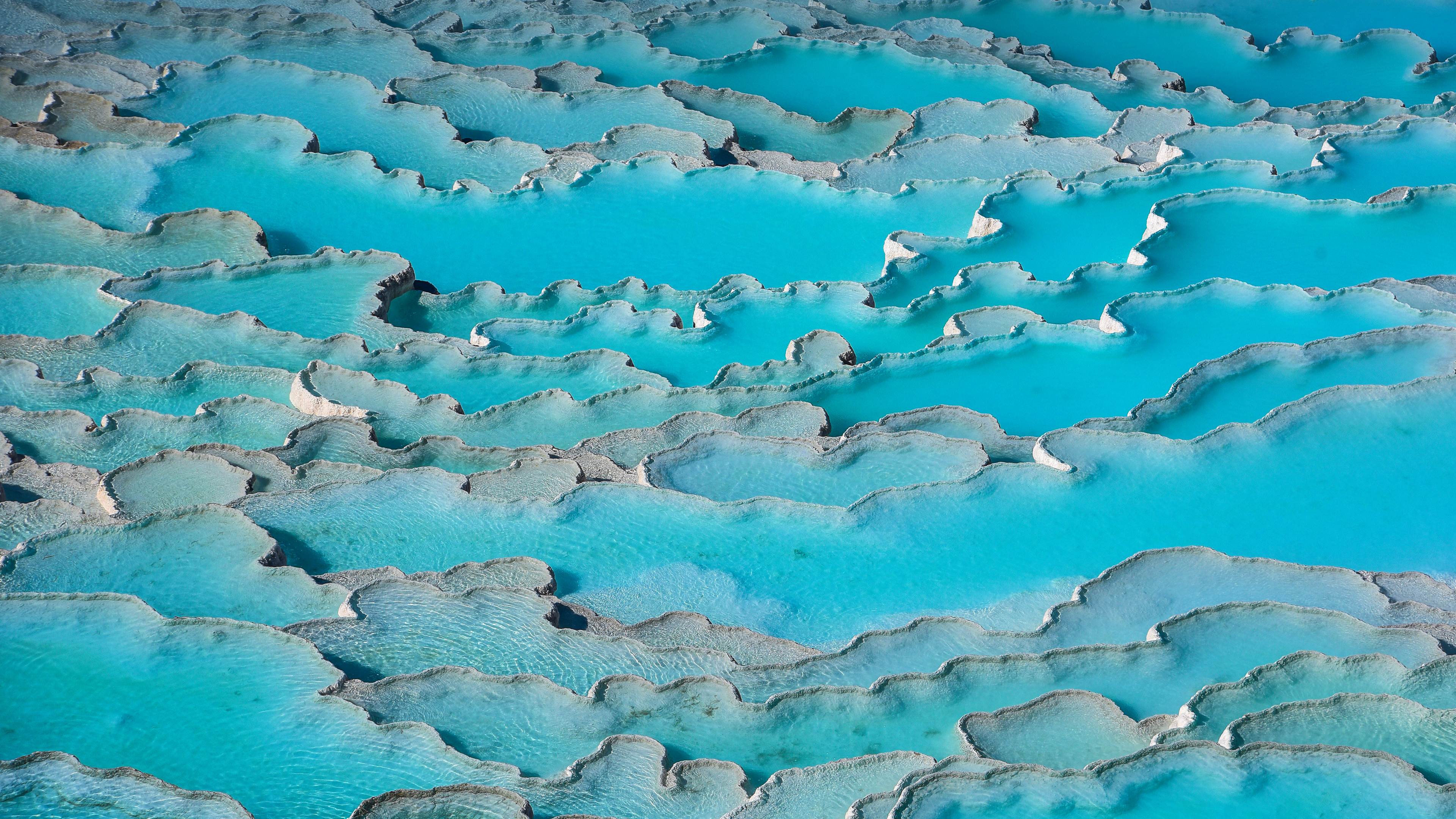 土耳其棉花堡的石灰华梯田和温泉令人惊叹,至少从公元前2世纪末和希腊罗马风格的希拉波利斯温泉浴场的建立开始,就让游客神魂颠倒。从那时起,人们就喜欢泡在华氏97度的温水中放松身心,据说可以治疗很多疾病。<br>棉花堡也被称为“棉花宫”,是为了向覆盖在山坡上的蓬松的白色岩层致敬。这种“棉花”就是石灰华,一种柔软的石灰石,是由几个世纪以来从悬崖上的泉水中滴下来的方解石沉积形成的。这是一种令人惊叹的白色,但石灰华也有很多不同的颜色,从灰色到金色都有。<br>梯田和希拉波利斯的古城遗迹一样,都非常独特,被联合国教科文组织列为世界遗产。保护温泉池的新规包括限制洗浴者人数,所以你可能不被允许下水嬉戏。但这里有很多值得惊叹的地方。你可以在古罗马剧院和墓地的废墟中漫步,参观希拉波利斯的古代寺庙和浴场。这里的温泉和希拉波利斯古城每年都会吸引200多万游客,使之成为土耳其最受欢迎的景点之一。