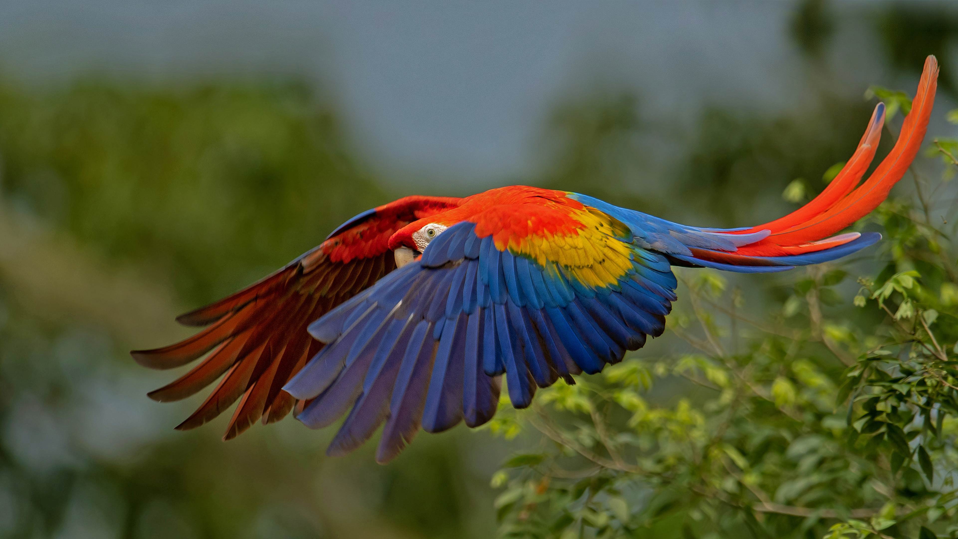 展开双翅的绯红金刚鹦鹉,哥斯达黎加 (© Harry Collins/Getty Images)