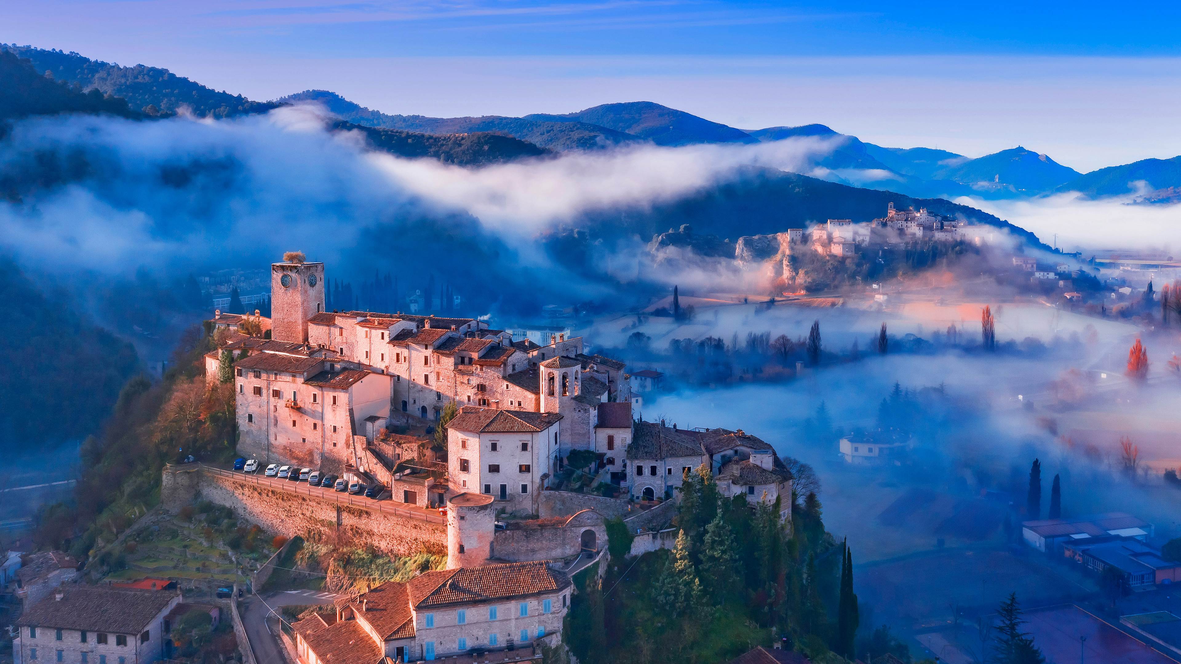 闭上眼睛,想象一个迷人的中世纪意大利村庄坐落在小山上,教堂的钟声在报时,一片朦胧的错落有致的田野向远处铺开延伸。这就是阿罗内古村落。(这么看来,我们可能也不需要这张照片。)阿罗内俯瞰瓦纳里纳,这是一个由内拉河雕刻而成的山谷,蜿蜒穿过意大利风景秀丽的翁布里亚地区,它被称为意大利的绿色心脏。<br>当你漫步在9世纪石砌房屋之间的狭窄小巷时,就像进入了时间隧道。从碉堡里向外凝视,想象过去的战争。你很容易就能发现标志性的方形钟楼,上面有一棵古老的橄榄树——这是村庄的创始人阿罗尼家族修建的堡垒的遗迹。<br>当你在其中漫步时,一定要去参观阿罗内镇的两座教堂。既然你在村庄的顶部—当地人称之为“拉泰拉”—那就去探索这座13世纪的圣乔瓦尼·巴蒂斯塔教堂及其令人惊叹的艺术作品吧。你也可以看看钟楼:“坎帕纳里·迪阿罗内”(阿罗内镇的敲钟人)是传统敲钟方法的守护者。在村庄的下半部分,您会发现圣玛丽亚·阿松塔教堂,里面挂满了可追溯到16世纪早期和17世纪的华丽壁画。别忘了欣赏16世纪的釉面赤陶雕塑哦。在这样一个小村庄,探索历史的方式有很多。