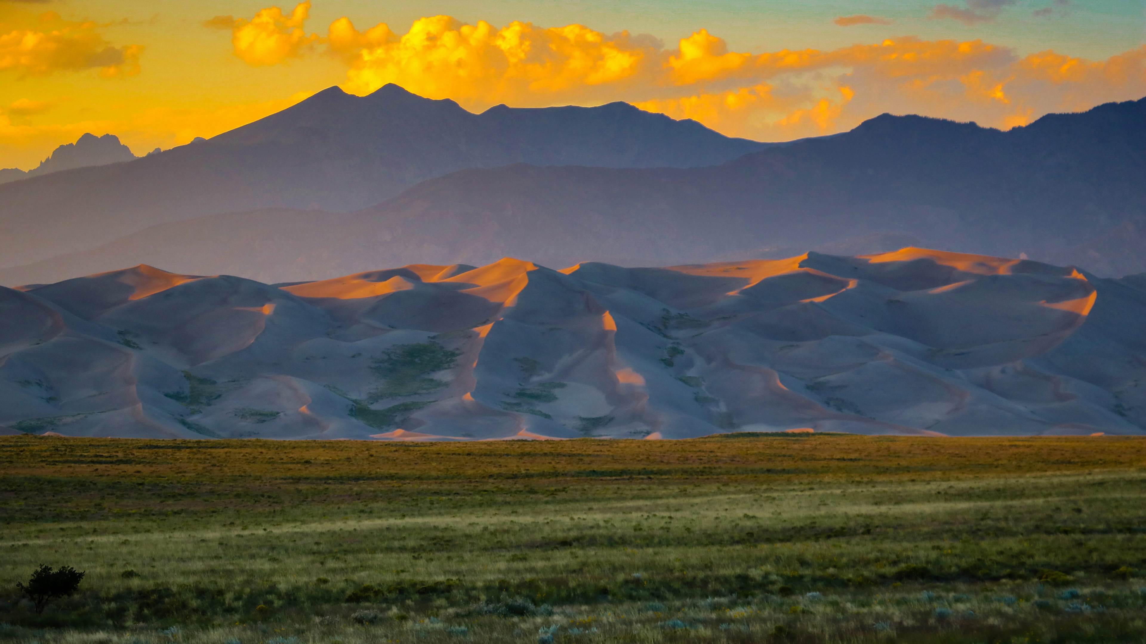 大沙丘国家公园及保护区拥有750英尺(甚至更高)的沙丘,覆盖面积超过30平方英里。但是这些北美最高的巍峨沙丘只是科罗拉多州众多惊人景观之一,这里还有针叶林、高山湖泊和湿地。这个面积为85000英亩的公园及保护区里,甚至还有高山冻原在桑格雷-德克里斯托山脚下蔓延。<br>1932年,美国总统休伯特·汉弗莱宣布该地区正式成为国家纪念地。2004年9月13日,该地区被重新命名为大沙丘国家公园及保护区,其公园规模也扩大了四倍。这里为游客提供了丰富多样的娱乐活动,比如玩沙盘、坐沙橇从陡峭的沙丘滑下来、徒步露营、骑马和骑宽胎自行车。