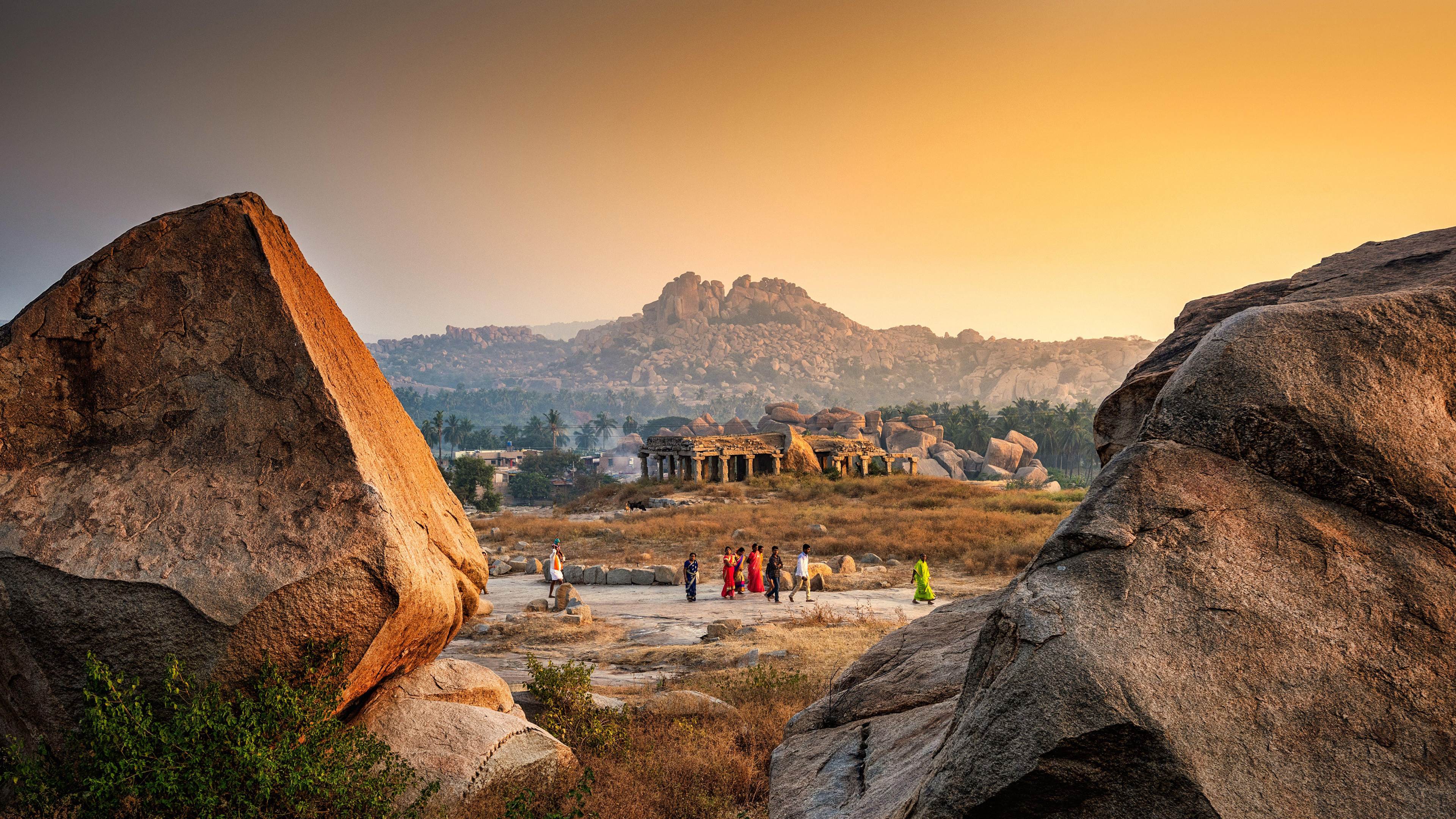 汉皮位于印度卡纳塔克邦,被联合国教科文组织列入世界遗产名录。从14世纪到16世纪,维查耶纳伽尔帝国统治着这片区域。而作为维查耶纳伽尔帝国首都的汉皮,自然留下了许多古迹群,例如古老的寺庙、雄伟的宫殿和满目苍夷的废墟。在克利希那德瓦·拉亚国王的统治期间(1509年至1529年),这座城市经历了大幅扩张,新建了很多具有艺术气息的建筑,吸引着来自世界各地的游客和商人。然而,1565年,维查耶纳伽尔帝国在塔利科塔战役中战败,汉皮也随之衰落。<br>如今,汉皮拥有约1000座古迹,现代背包客的到来让这座失落的城市重获新生。赫马库塔山是汉皮游客最多的地方之一,那里有许多保存完好的寺庙和神社。在山上游览时,游客们还可以顺便在湿婆神的维鲁帕克沙神庙停下来祈祷。