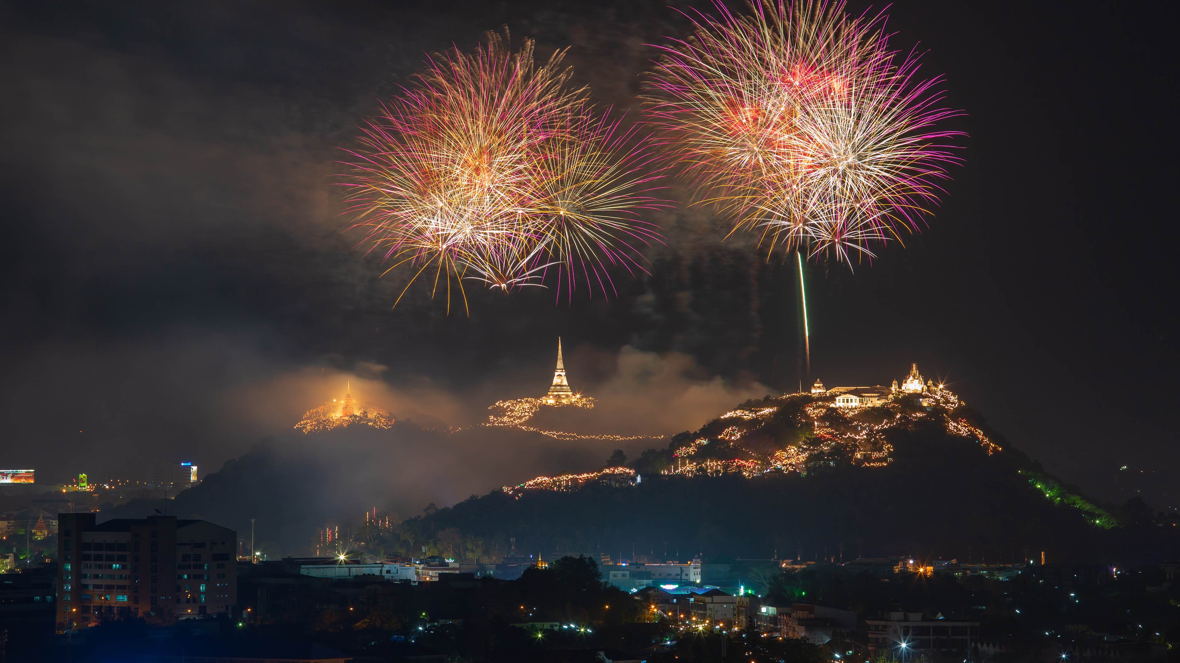 帕那空奇里上空的烟花,碧武里府,泰国 (© noomcpk/Shutterstock)