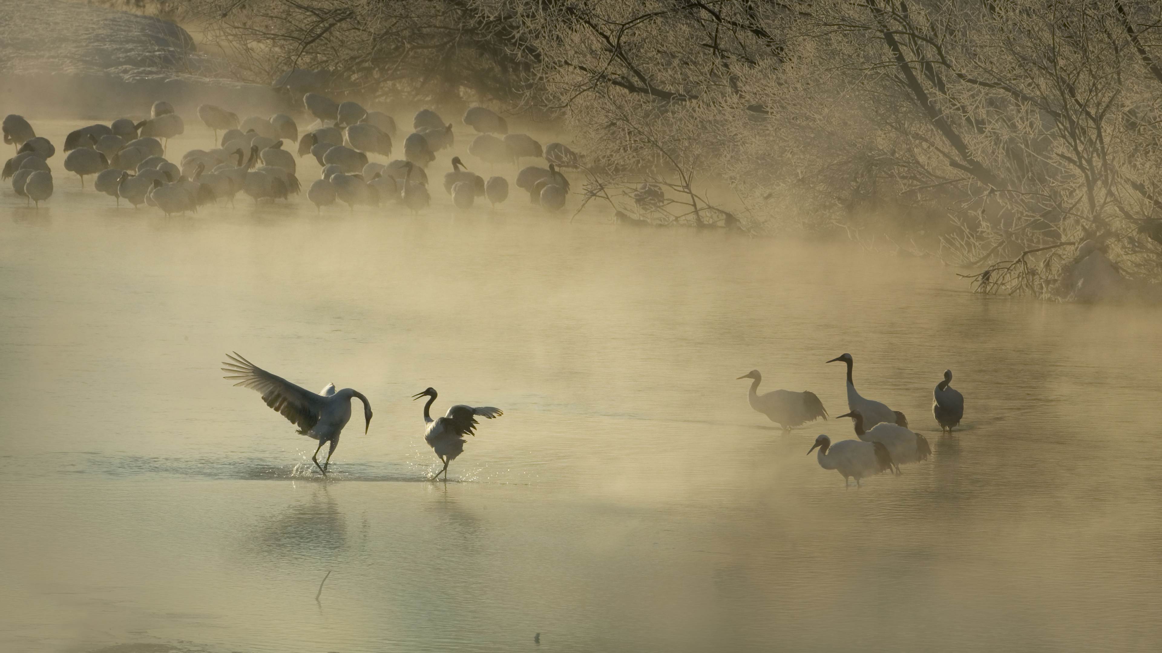 情人节到来之际,空气中弥漫着爱的气息!这个节日通常与各种浪漫象征联系在一起,比如丘比特,或者威廉·莎士比亚笔下著名的恋人罗密欧和朱丽叶。爱情的象征也可以在大自然中找到,比如正在日本北海道的芦苇沼泽和冰冻湖泊中嬉戏的丹顶鹤。这些优雅的鸟儿跳着迷人的求偶舞,雄鹤带头翩翩起舞,随后伴侣加入它的舞步。丹顶鹤象征着好运、长寿和忠诚,许多国家都有折千纸鹤的传统,传说折一千只纸鹤可以实现愿望。