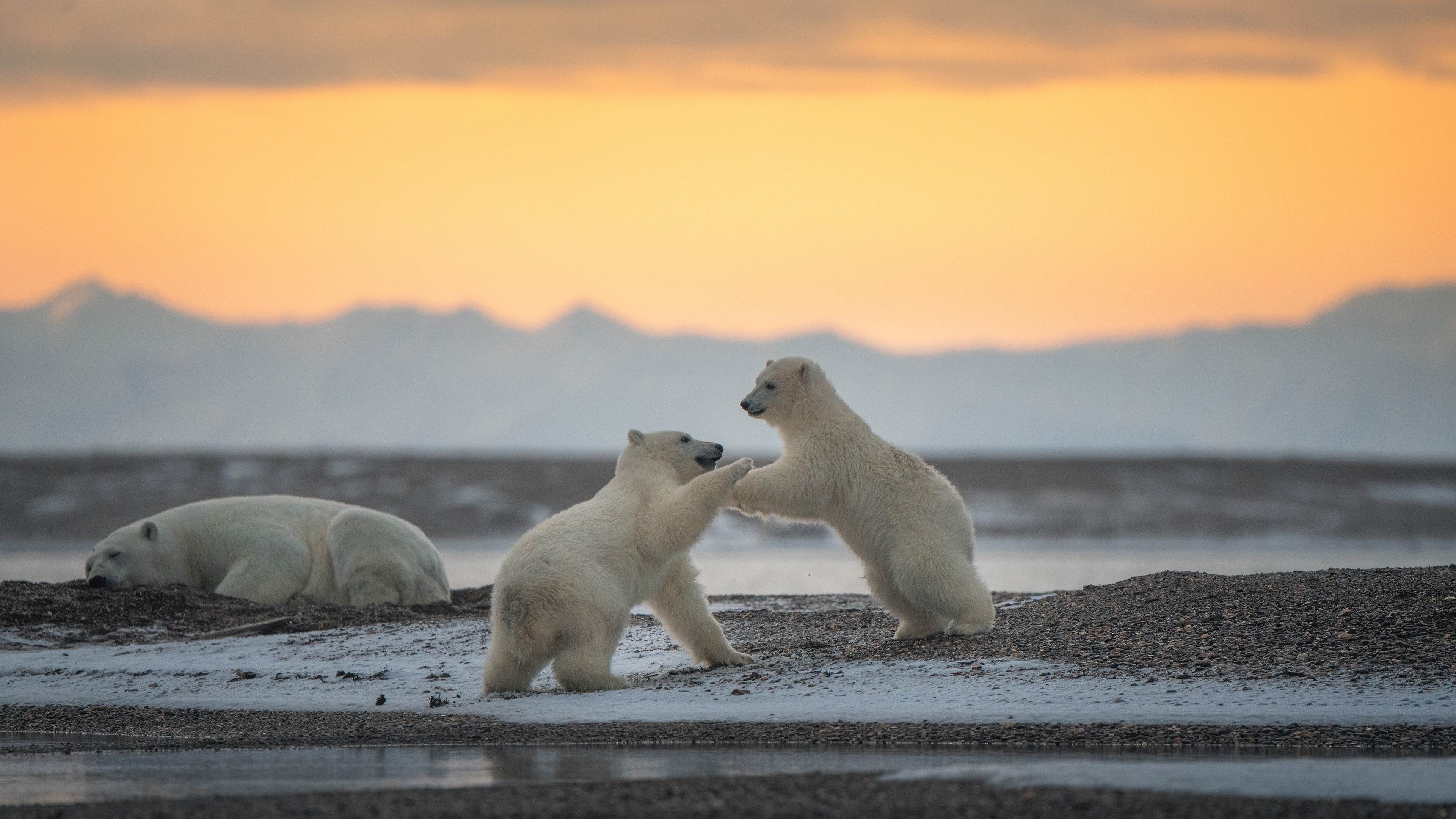 玩耍的北极熊幼崽,卡克托维克,阿拉斯加州,美国 (© Piriya Photography/Getty Images)