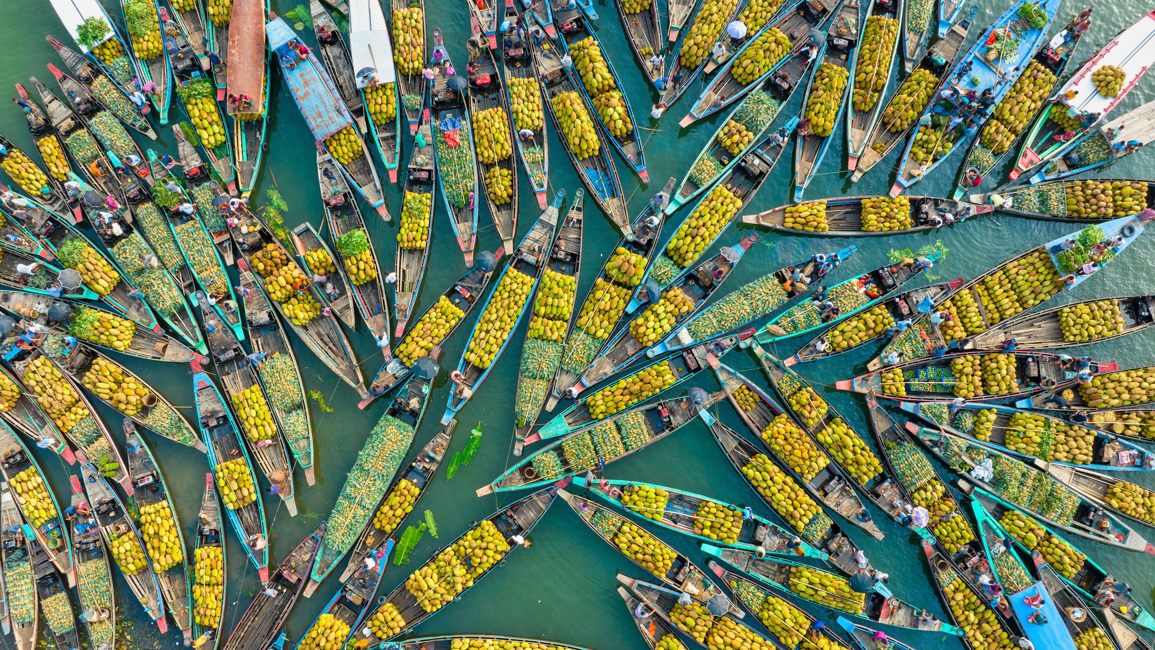每周六,孟加拉国最大的人工湖都会变得五彩缤纷、生机勃勃。兰加马蒂区的卡普泰湖是今天画面中时令水果水上市场的所在地。然而,卡普泰湖自身的魅力更为深远。该湖建于1961年,用于水力发电,不仅淹没了土地和查克马斯国王的宫殿,还导致10万人流离失所。然而,顽强的生命力战胜了这一切,当地社区进行了调整。现在,繁荣的集市已成为人们的生计。在这里,农民们沿着河岸驾着木船与热心的买家打交道。在这里,你既可以带着满满一袋新鲜水果离开,也可以带着难忘的回忆离开,选择你喜欢的方式就好。