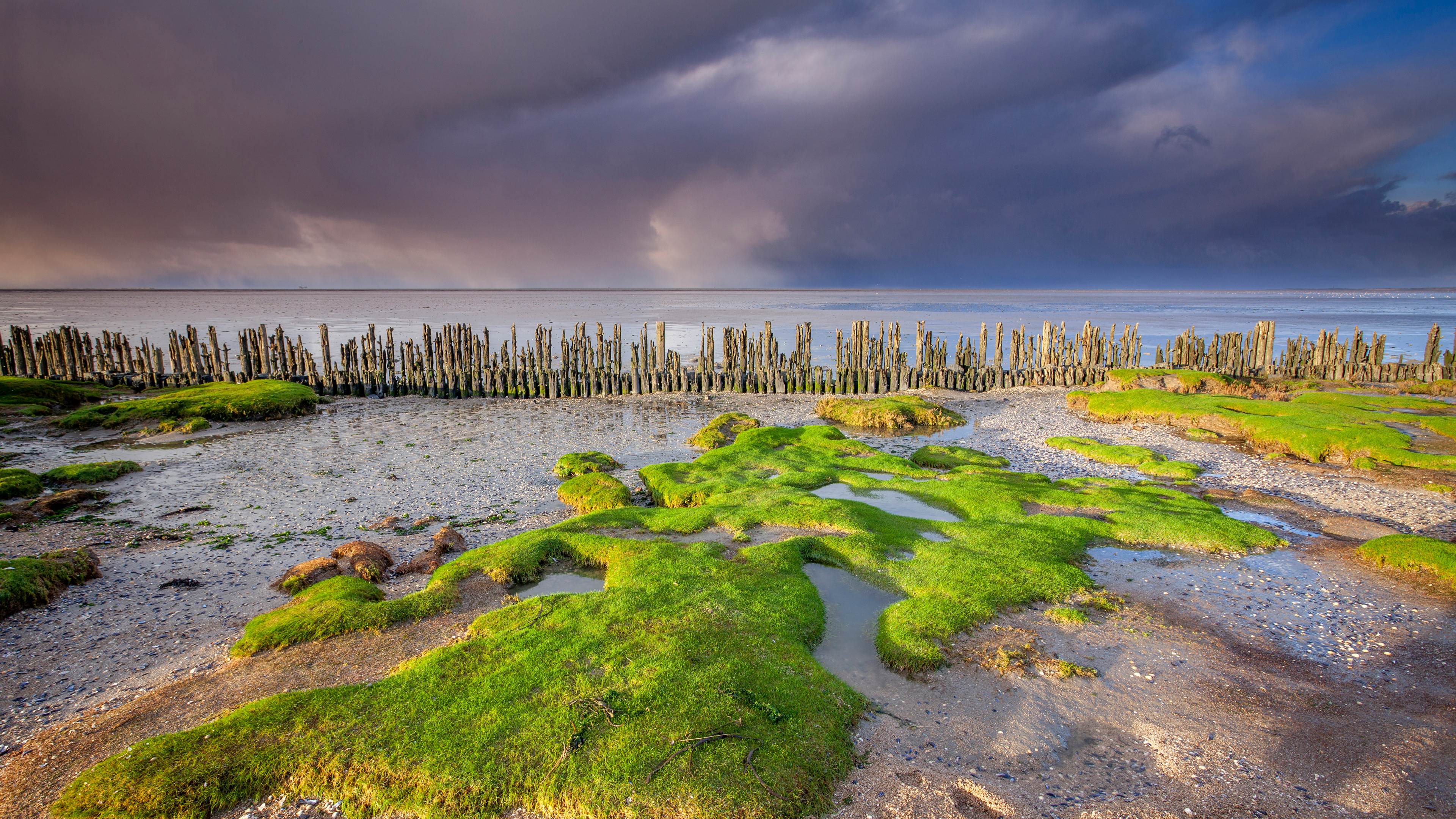 如果你曾经想过在水上漫步,或者在接近水面的地方行走,瓦登海就是你的理想之地。沿着荷兰、德国和丹麦的海岸绵延300多英里,这个联合国教科文组织认定的世界遗产拥有独特的滩涂和湿地景观。事实上,它是世界上最大的完整潮间带(即涨潮时在水下,退潮时露出水面的沙地和泥滩)。该地区既是突唇白鲑、褐鳟和白喙斑纹海豚等水生物种的游乐场,也是涉禽和苍鹭等鸟类的栖息地。<br>图为荷兰弗里斯兰的瓦登海岸。这片海岸遍布着迷人的渔村和中世纪教堂。在这里,泥滩徒步旅行是一种娱乐消遣,瓦登海是一个很受欢迎的目的地。当潮水退去时,泥滩徒步旅行者可以在海床上行走,踩着泥浆,涉过浅水。无论你是想挑战瓦登海,还是想探寻海豹的踪迹,这里都能为你提供丰富的探险活动。只是别忘记带上一双可以在泥滩中行走的靴子!