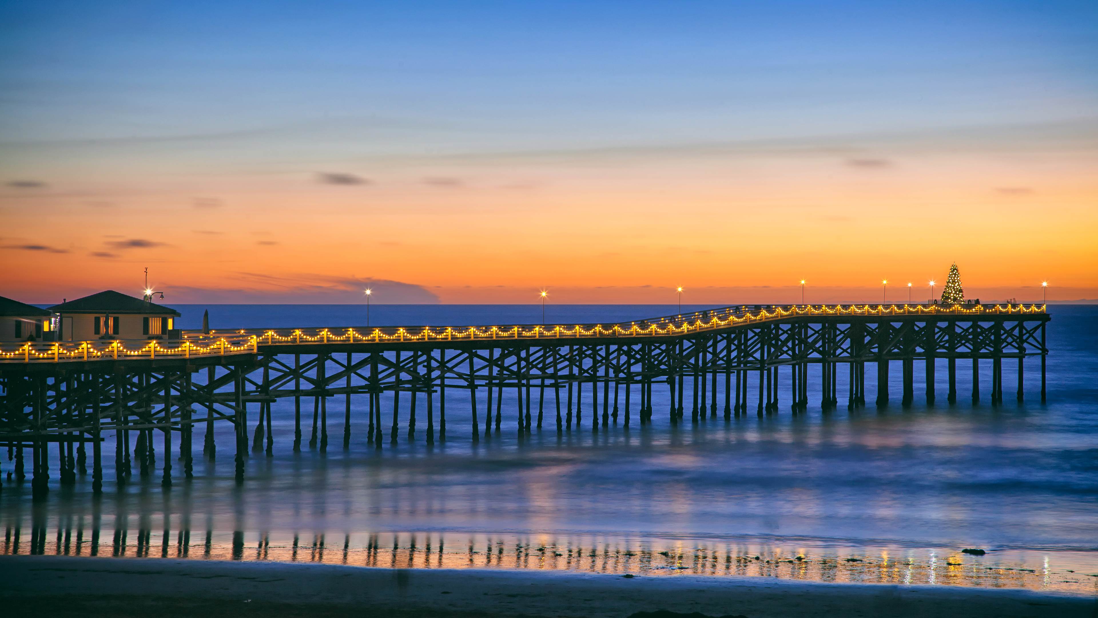 水晶码头的圣诞树,太平洋海滩,加利福尼亚州,美国 (© SamAntonioPhotography/Getty Images)