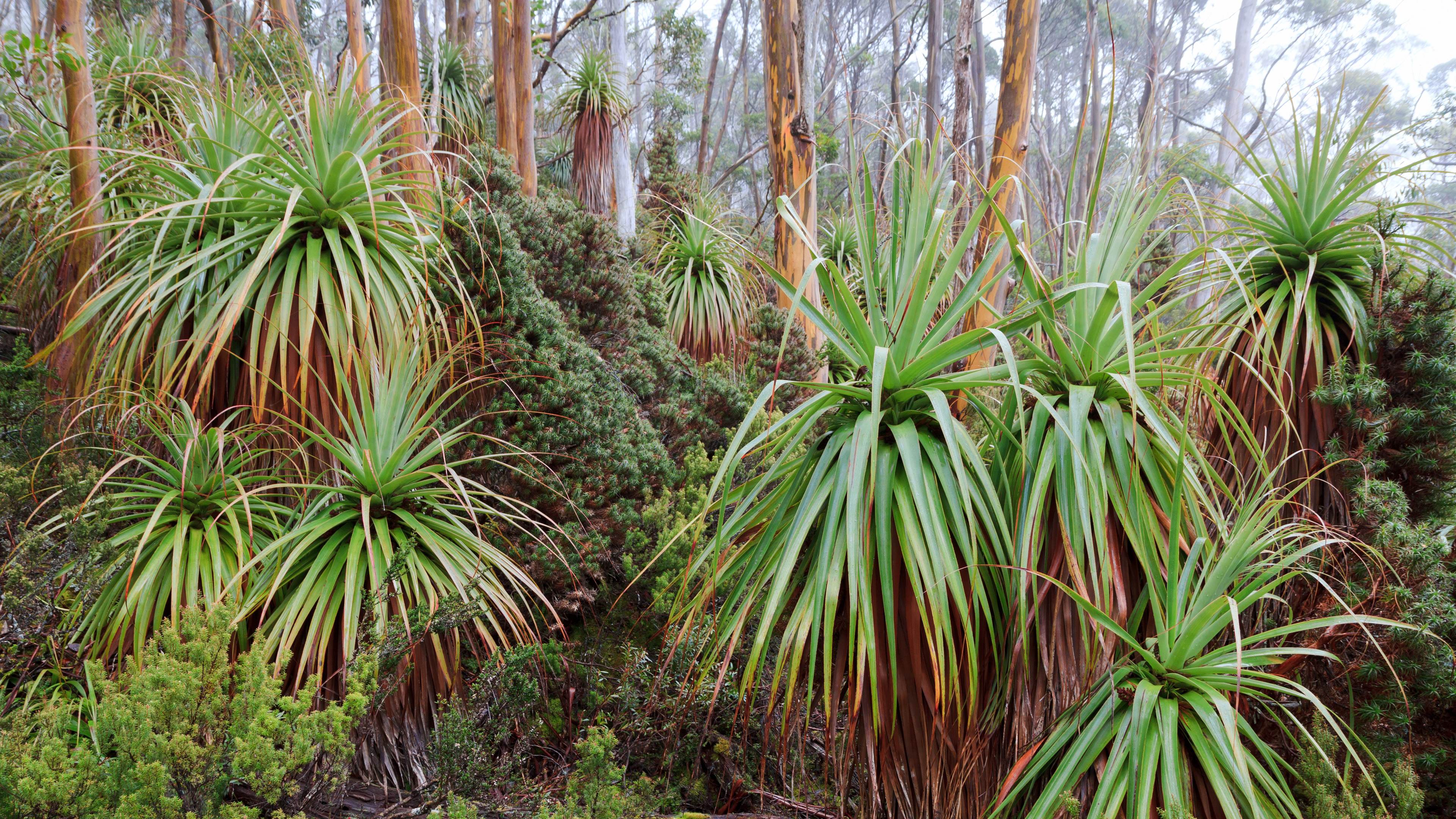 位于澳大利亚东南海岸附近的塔斯马尼亚岛的中心,坐落着菲尔德山国家公园。该公园占地超过60平方英里,是该州最古老的国家公园之一。沿着蜿蜒的公路驶入公园,你将看到多样的自然景观,从温带雨林中世界上最高的桉树到高山沼泽地。这些千变万化的景色让公园有了“四季公园”的美誉。公园必去的景点之一是罗素瀑布,瀑布呈三级,落差达190英尺。<br>今日图片展示了公园中两种世界上仅在塔斯马尼亚才有的植物。潘达尼(也被称为巨型草树)和塔斯马尼亚蓝桉。潘达尼是石楠家族中体型最大的成员,可生长至40英尺高。塔斯马尼亚雪胶是一种适宜生长在塔斯马尼亚中部高原的桉树。除了令人印象深刻的植物外,公园里还可以看到塔斯马尼亚恶魔、袋鼠和鸭嘴兽这些令人惊叹的动物。无论春夏秋冬,这个公园都能给游客带来惊喜。